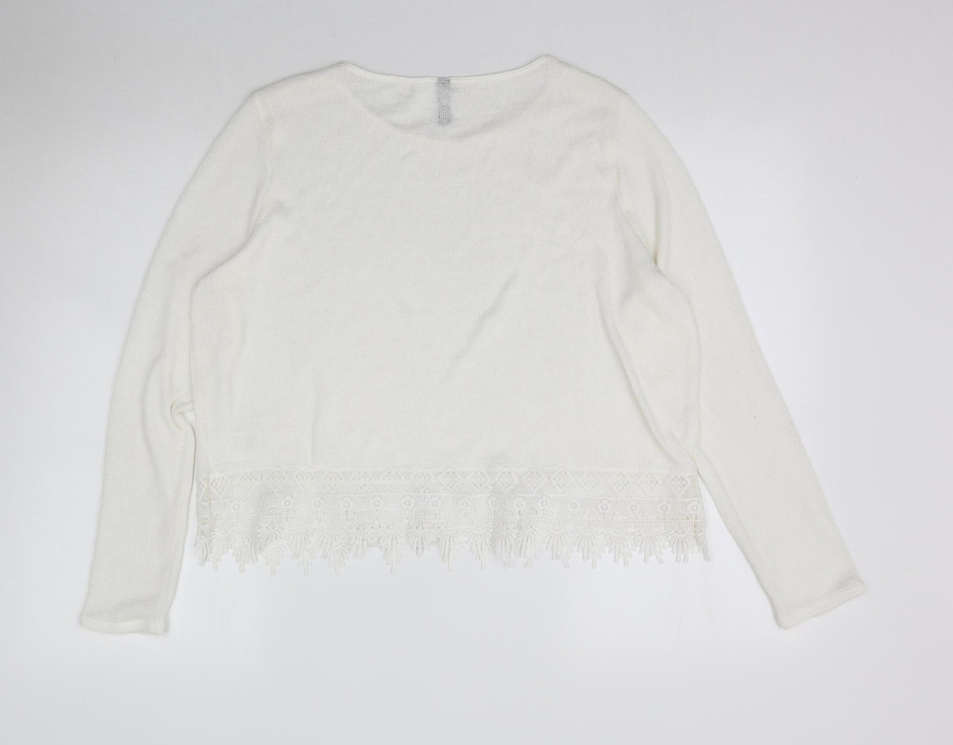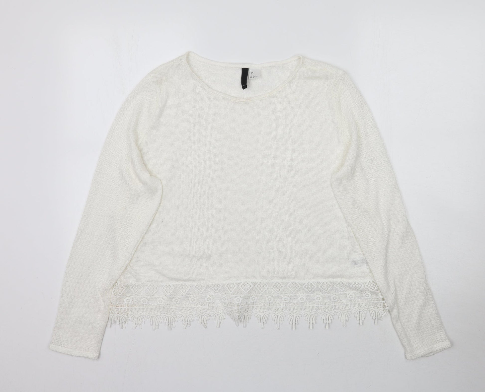 H&M Womens White Knit Pullover Jumper Size L - Thin material