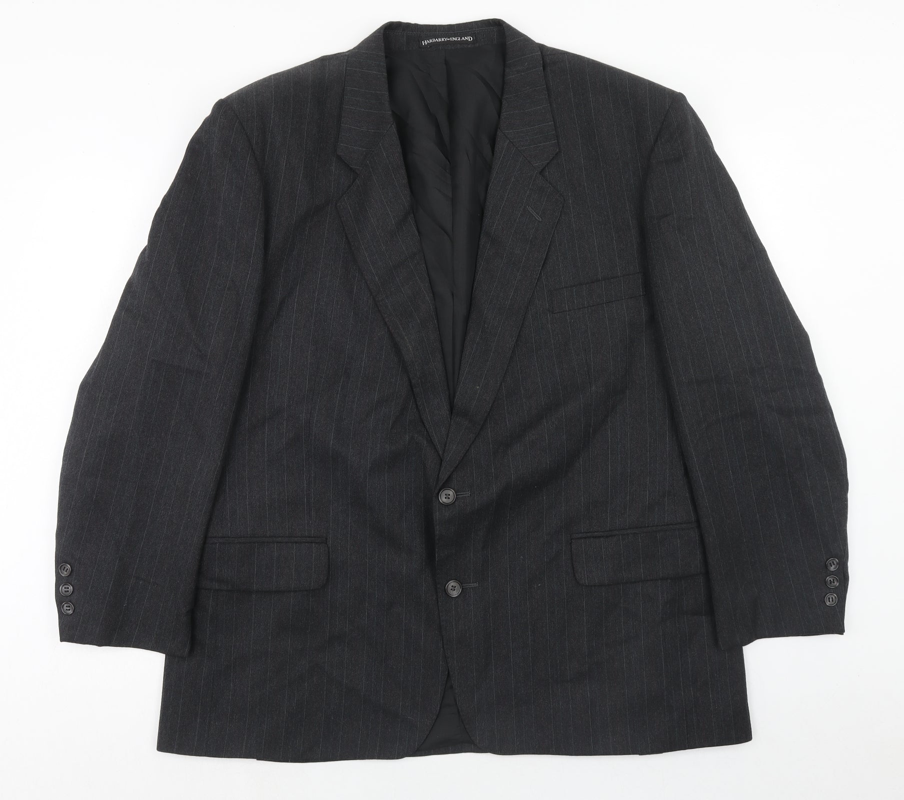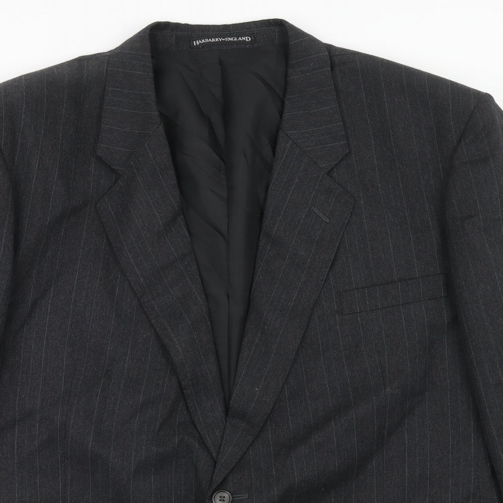 Harbarry of England Mens Grey Striped Wool Jacket Suit Jacket Size 46 Regular