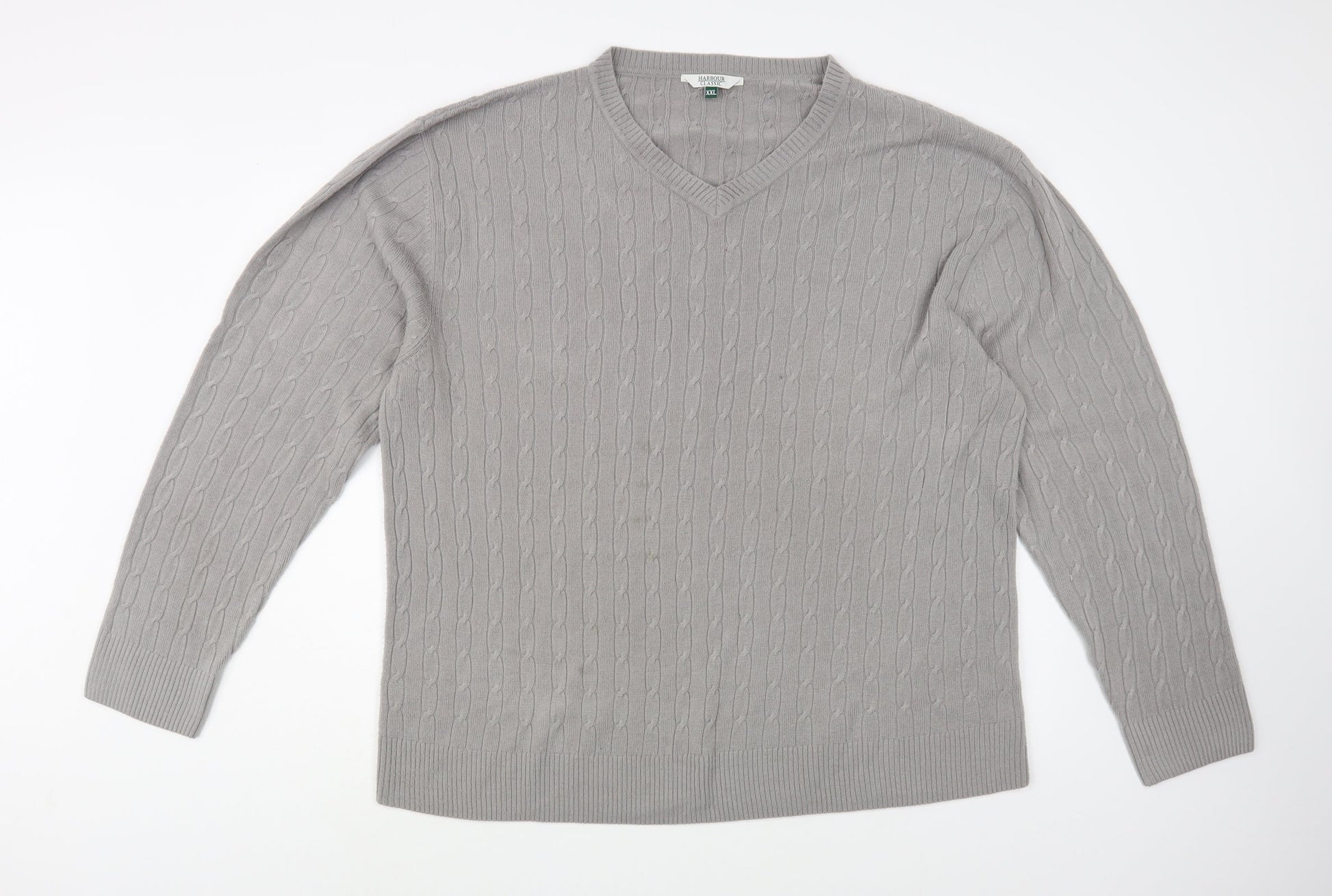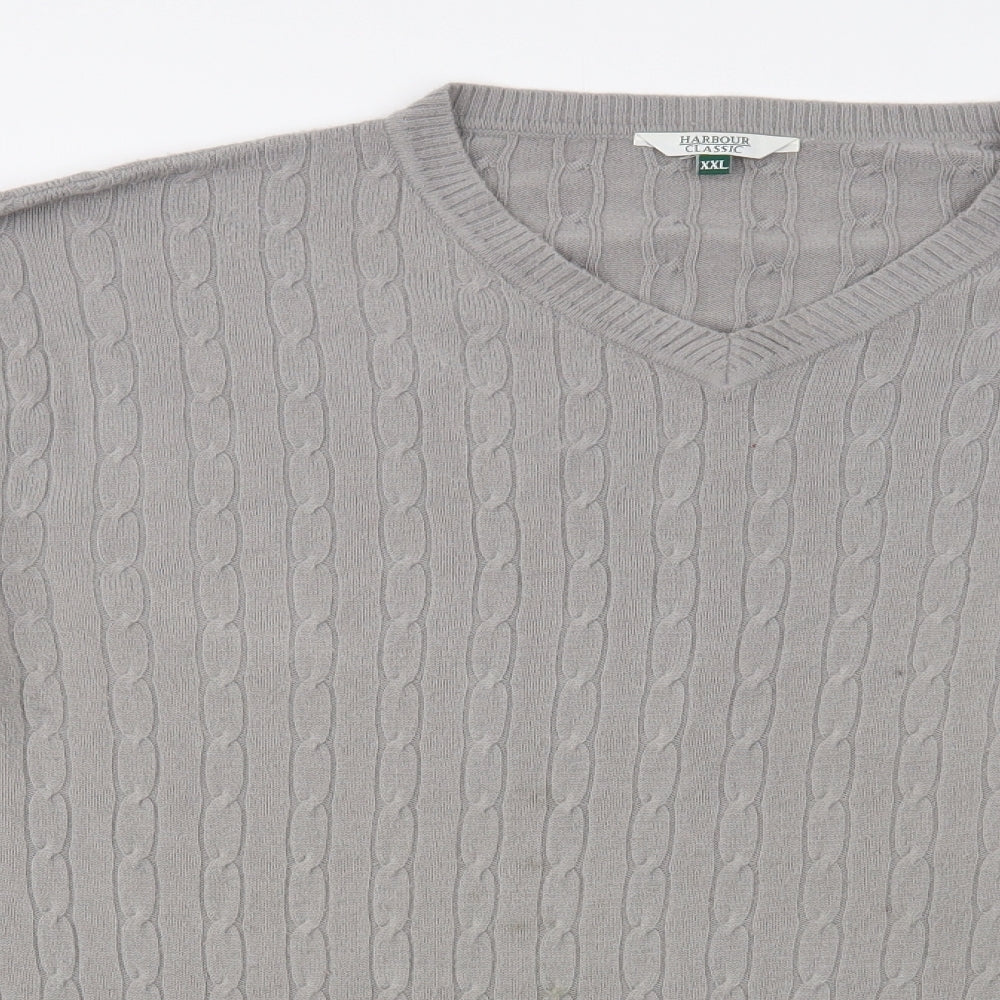 Harbour Classic Mens Grey V-Neck Acrylic Pullover Jumper Size 2XL