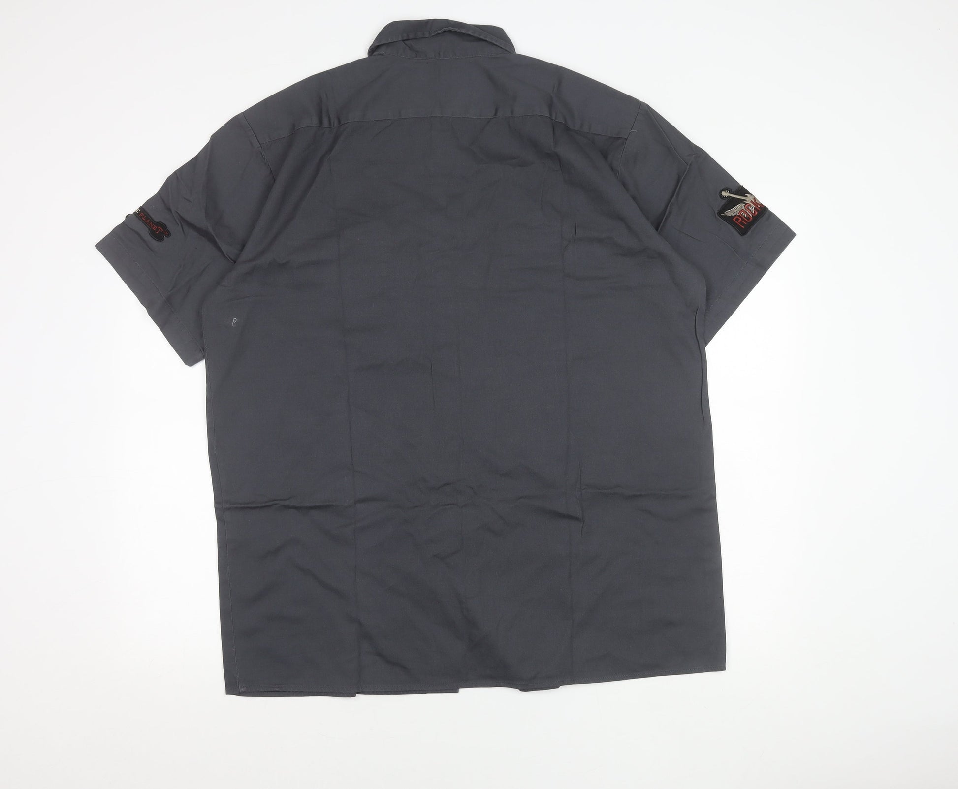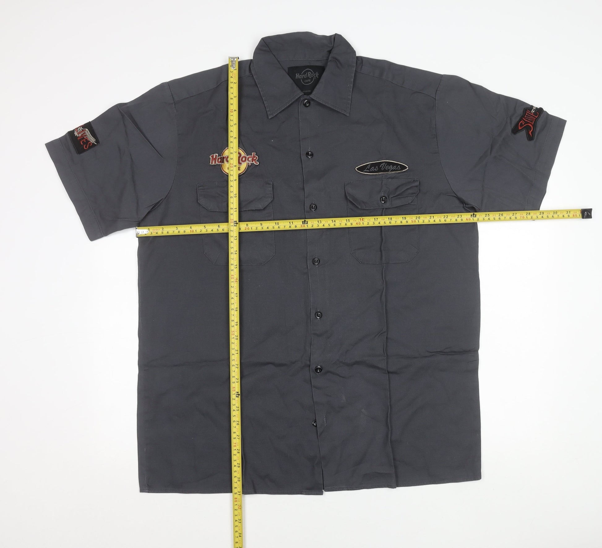 Hard Rock Cafe Men’s Grey Las Vegas Embroidered Short Sleeve Button-Up Shirt L