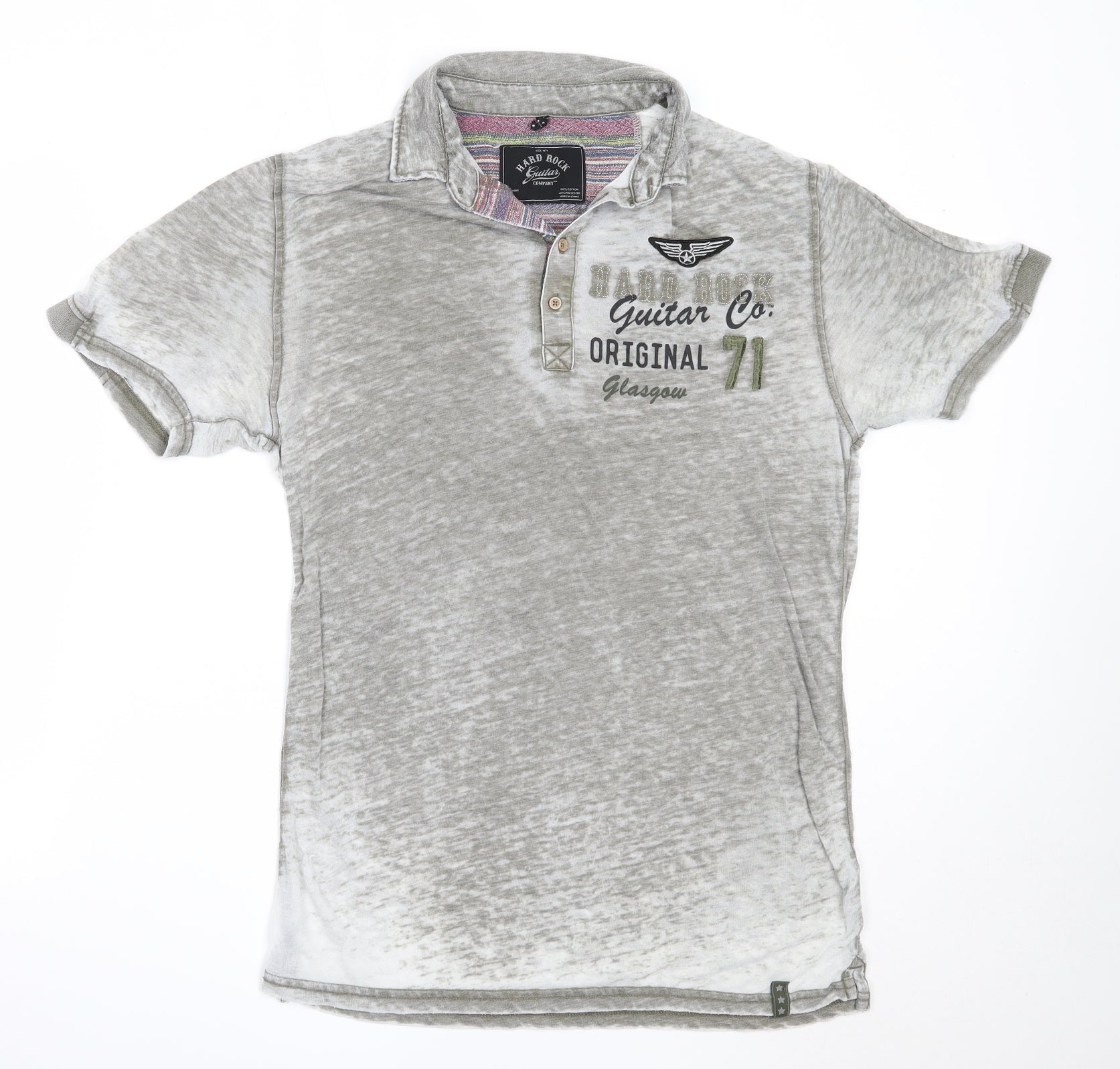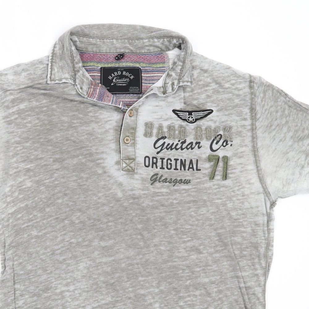 Hard Rock Mens Grey Cotton T-Shirt Size M Collared - hard rock glasgow