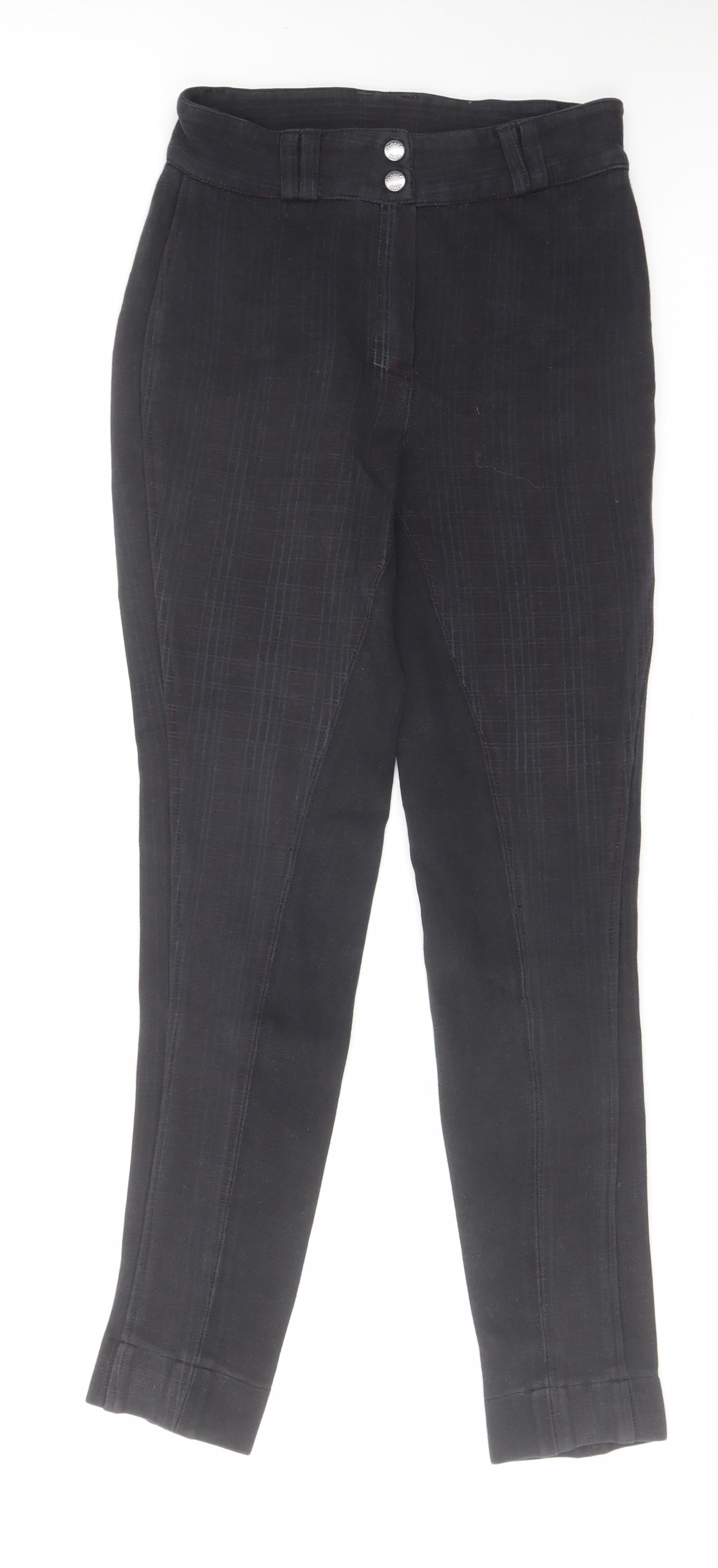 Harry Hall Womens Black Check Cotton Trousers Size 26 in L27 in Regular Zip - Equestrian
