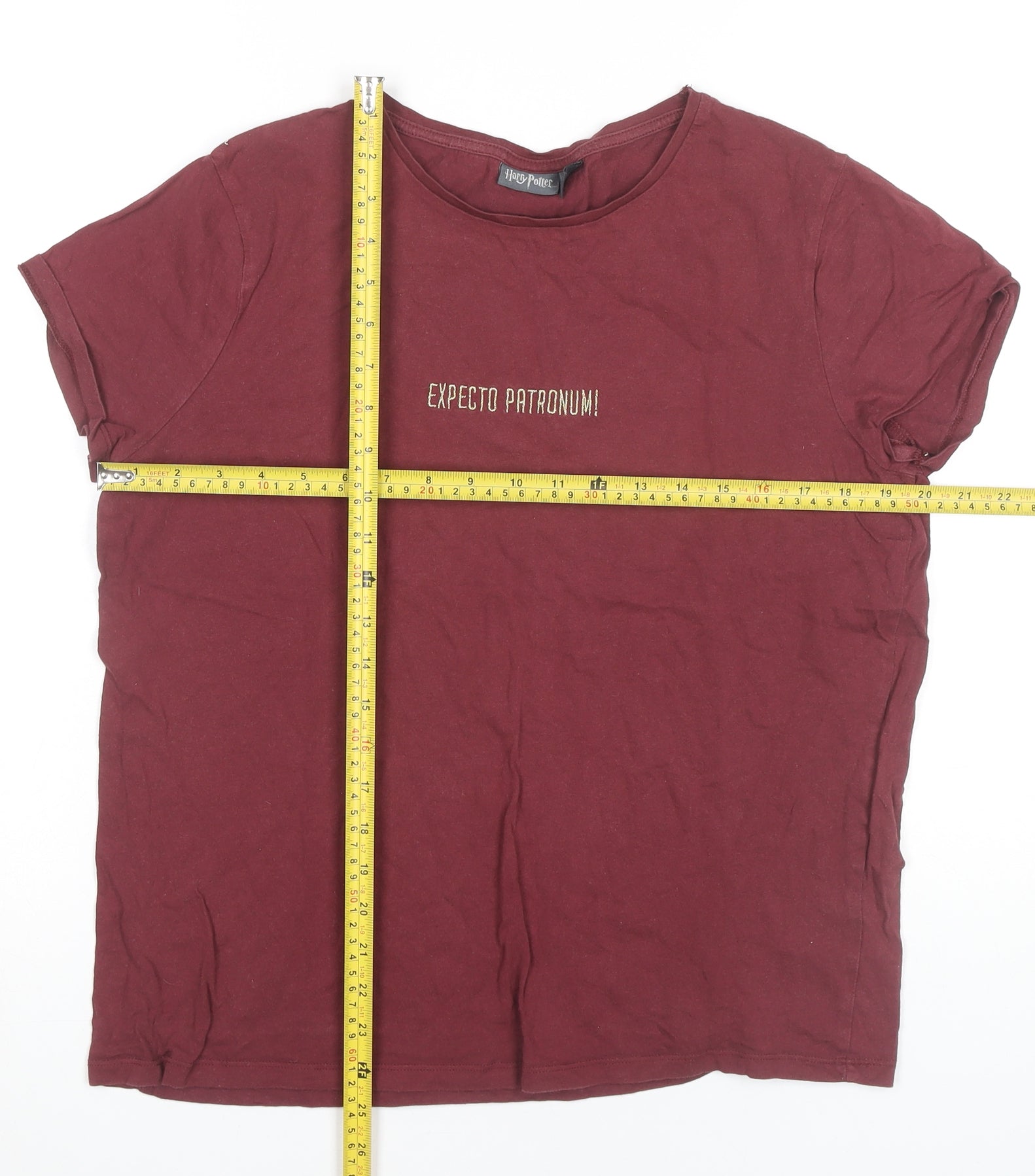 Harry Potter Womens Red T-Shirt Size M Expecto Patronum Embroidered