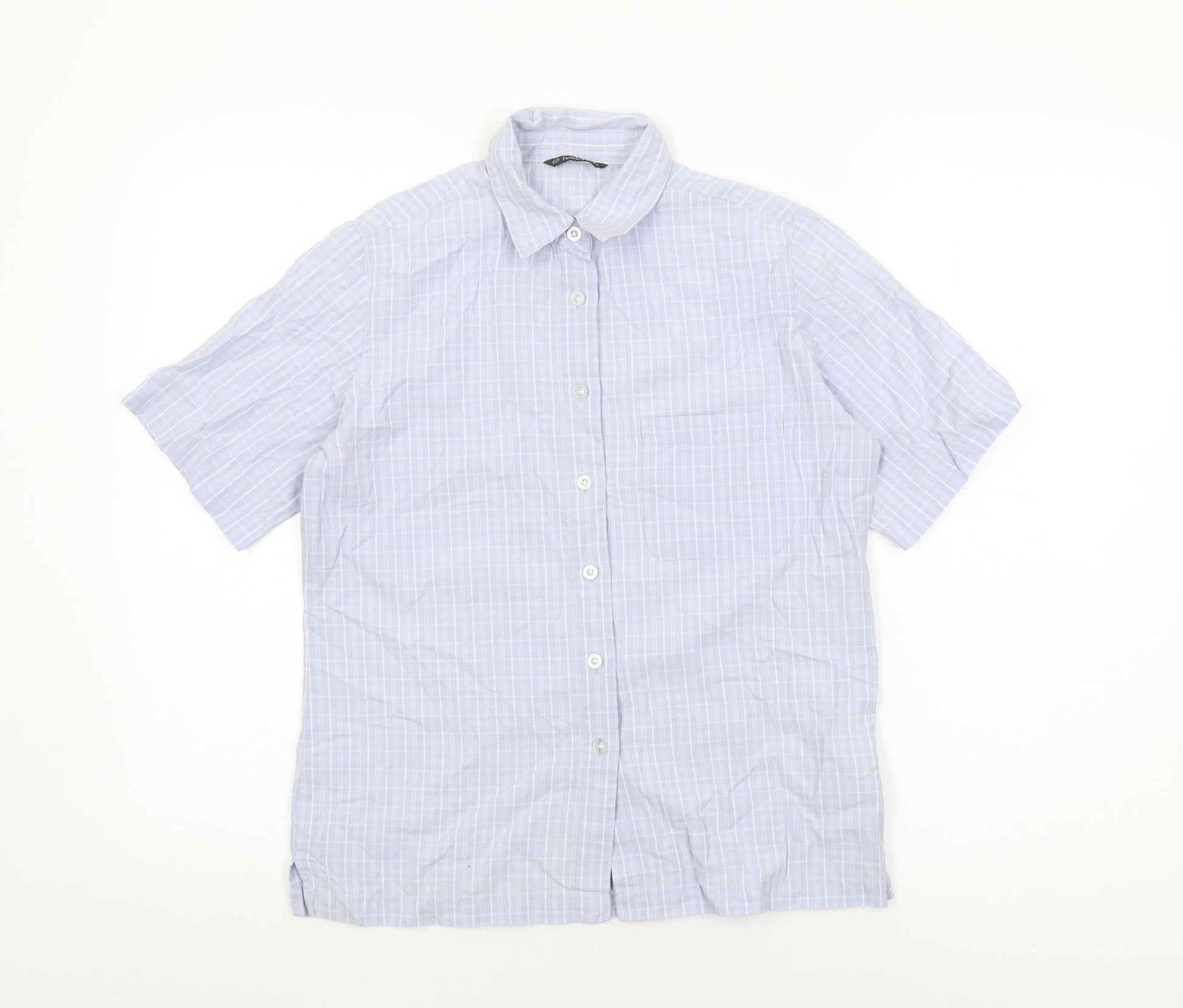 Hawkshead Womens Blue Geometric Cotton Basic Button-Up Size 10 Collared