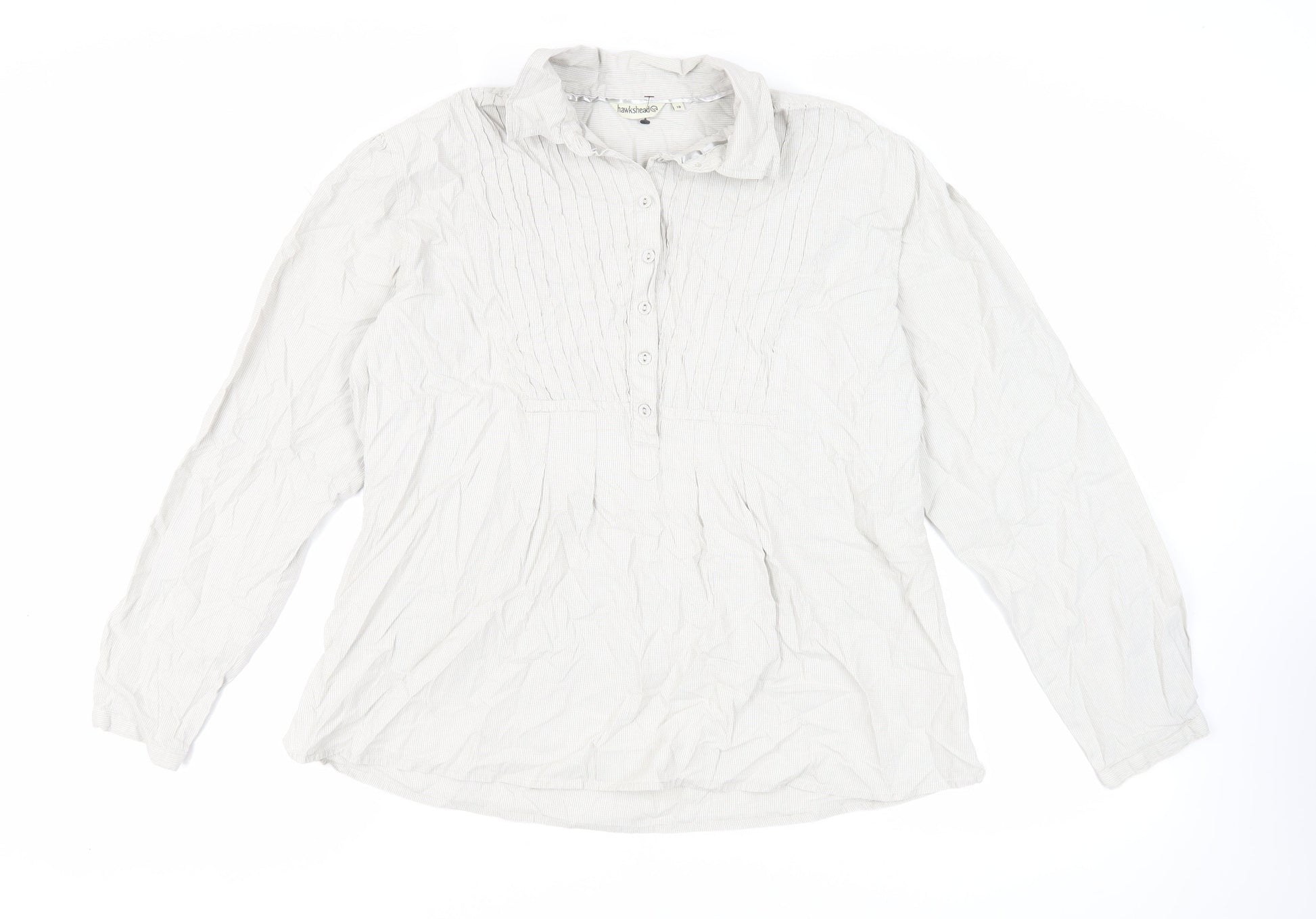 Hawkshead Womens Grey Geometric Cotton Basic Blouse Size 18 Collared