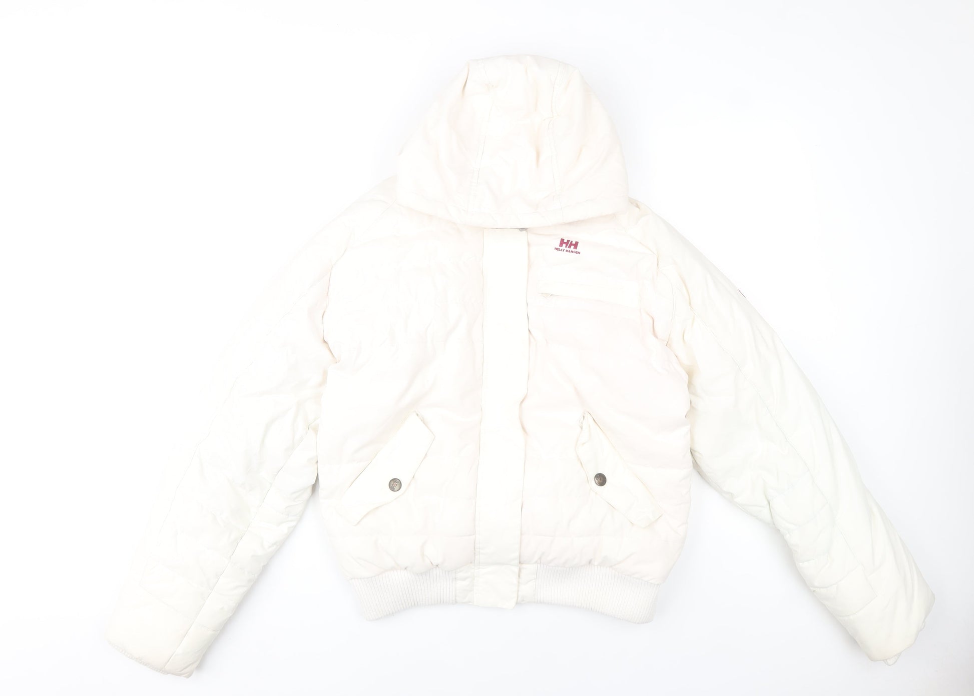 Helly Hansen Women's White Hooded Puffer Jacket L Winter Down Coat