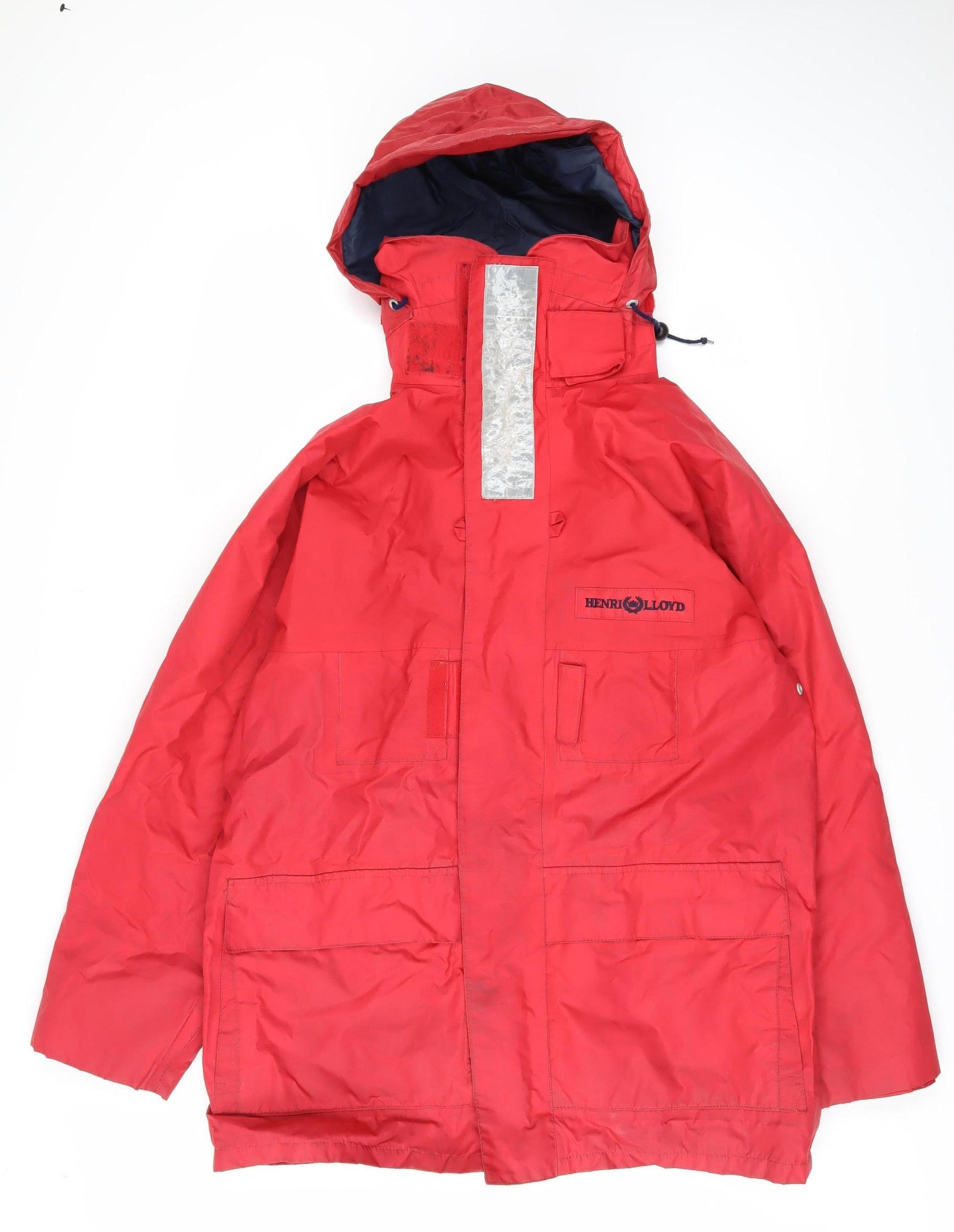 Henri Lloyd Men's Red Mid-Length Parka Jacket, Waterproof Hooded