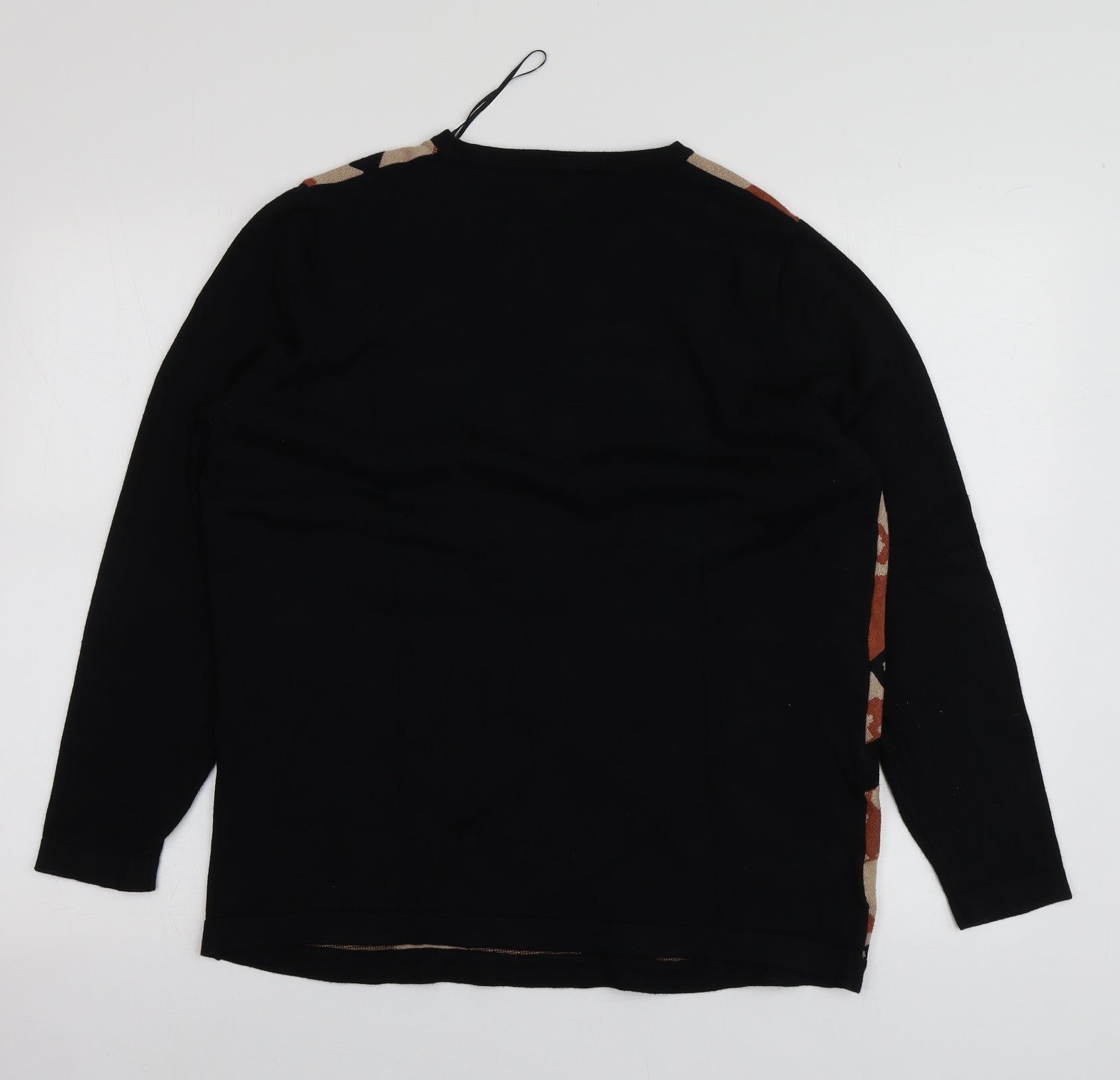 Hepburn Womens Black Round Neck Animal Print Viscose Pullover Jumper Size L