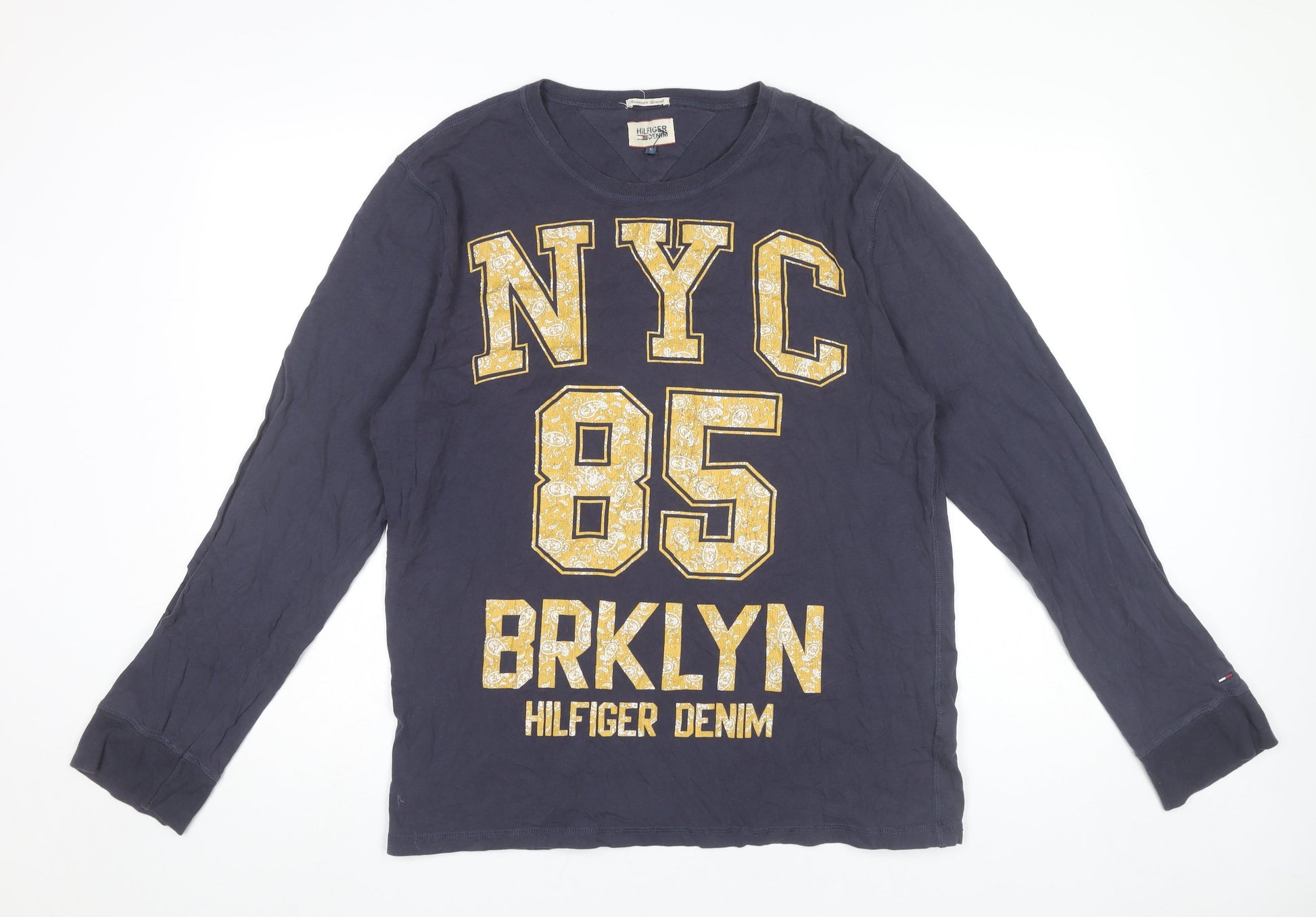 Hilfiger Denim Men's Blue Long Sleeve Graphic T-Shirt Size L