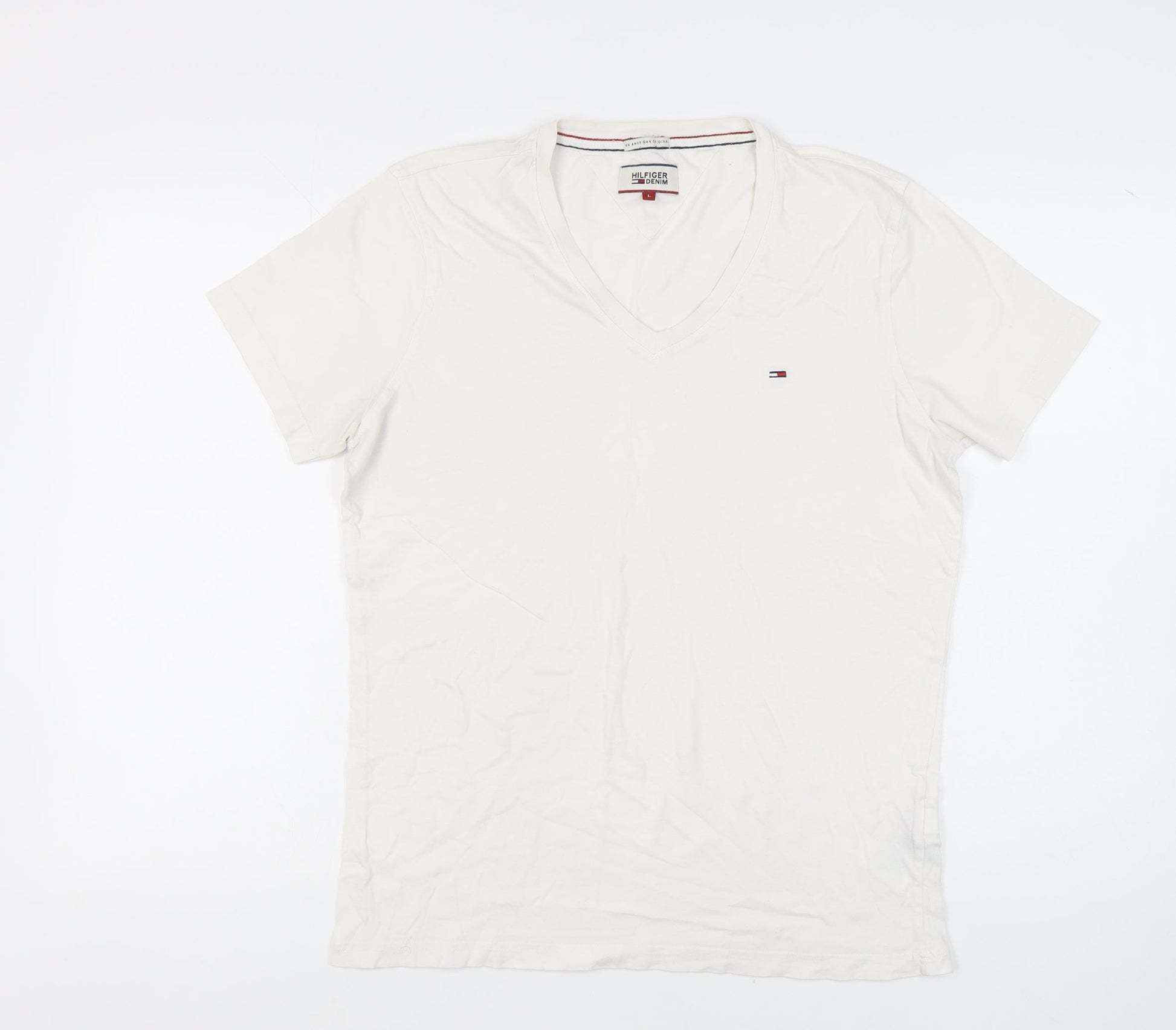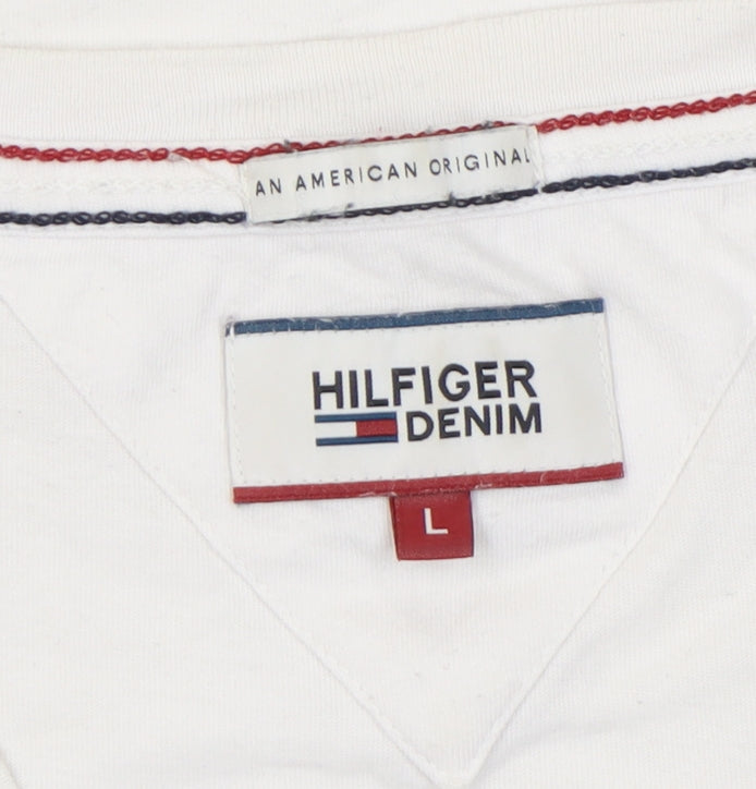 Hilfiger Denim Men's White V-Neck L T-Shirt