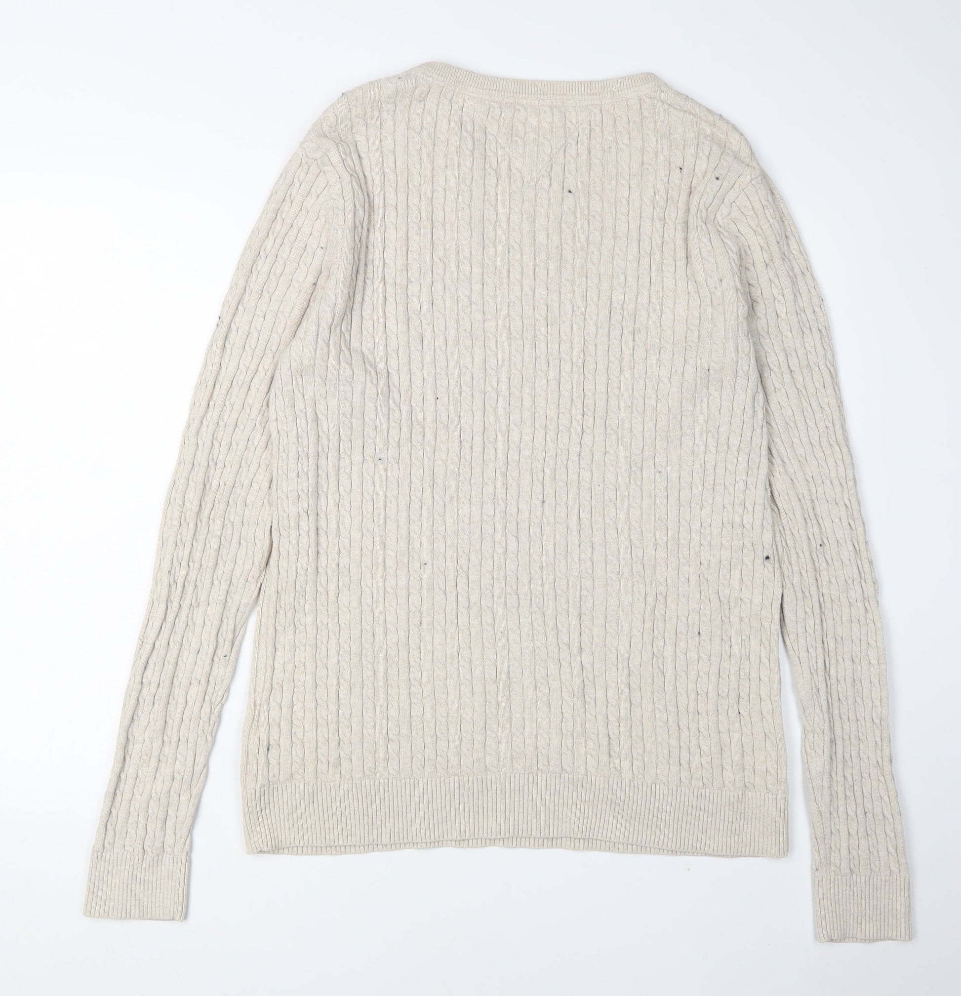 Hilfiger Denim Men's XL Beige Cable-Knit Pullover Jumper