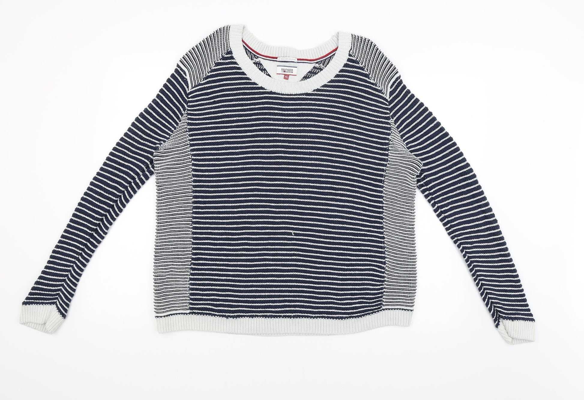 Hilfiger Mens Blue Striped Pullover Jumper Size XL