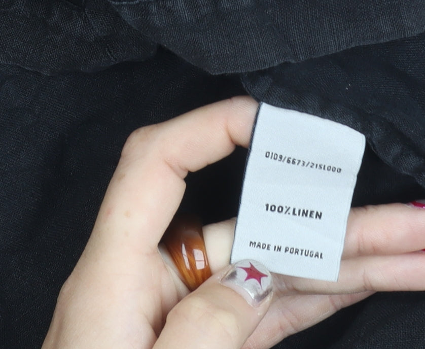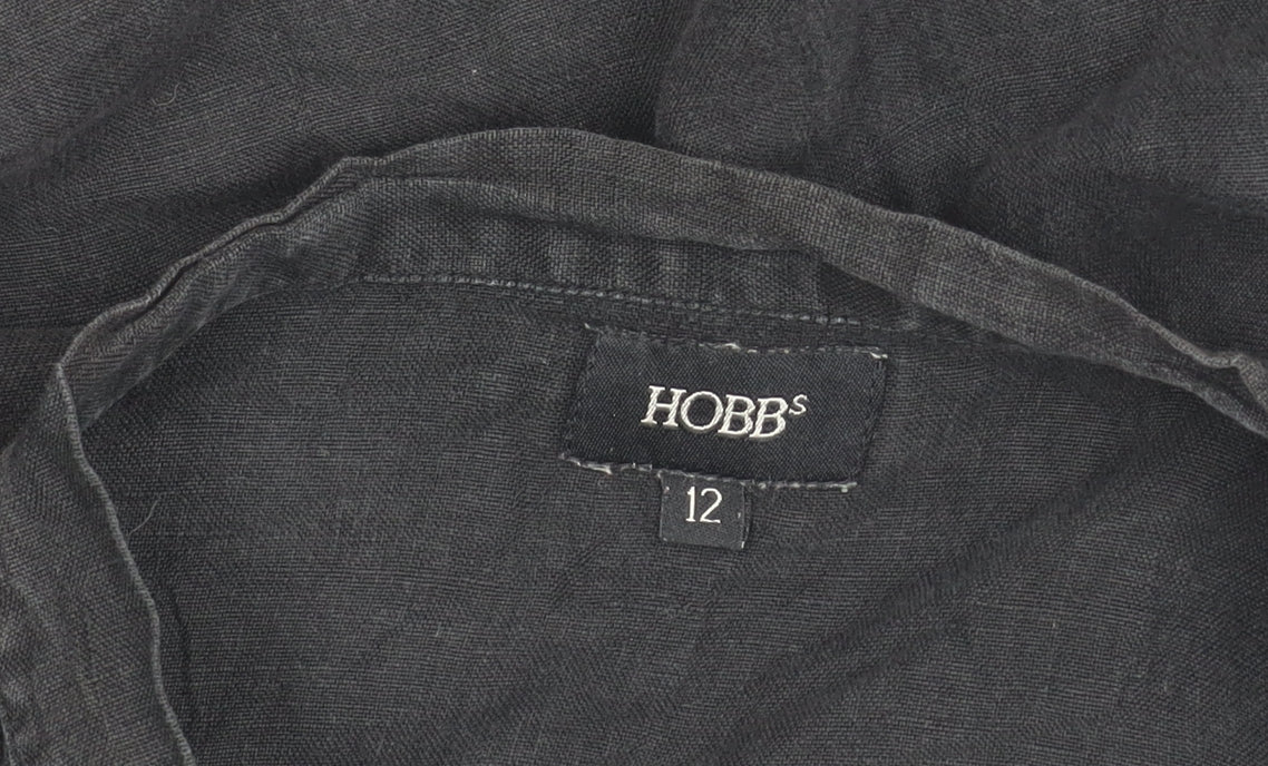 Hobbs Women’s Black Linen Blouse Size 12 Long Sleeve Lightweight
