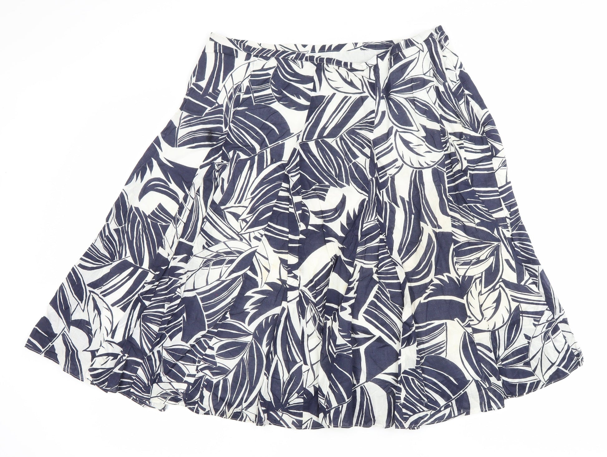 Hobbs Women’s Blue Floral A-Line Cotton Knee Length Skirt UK 14