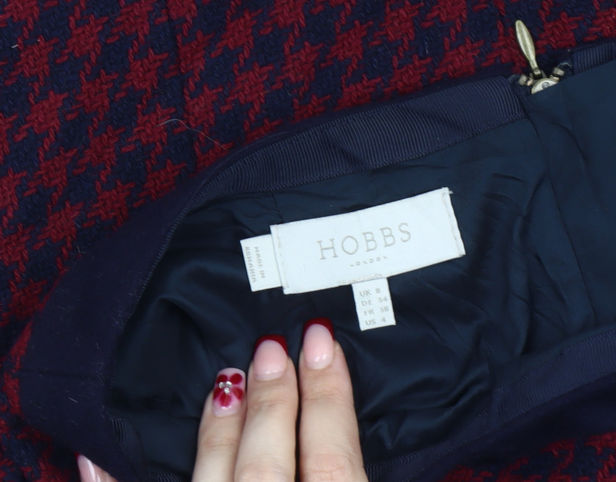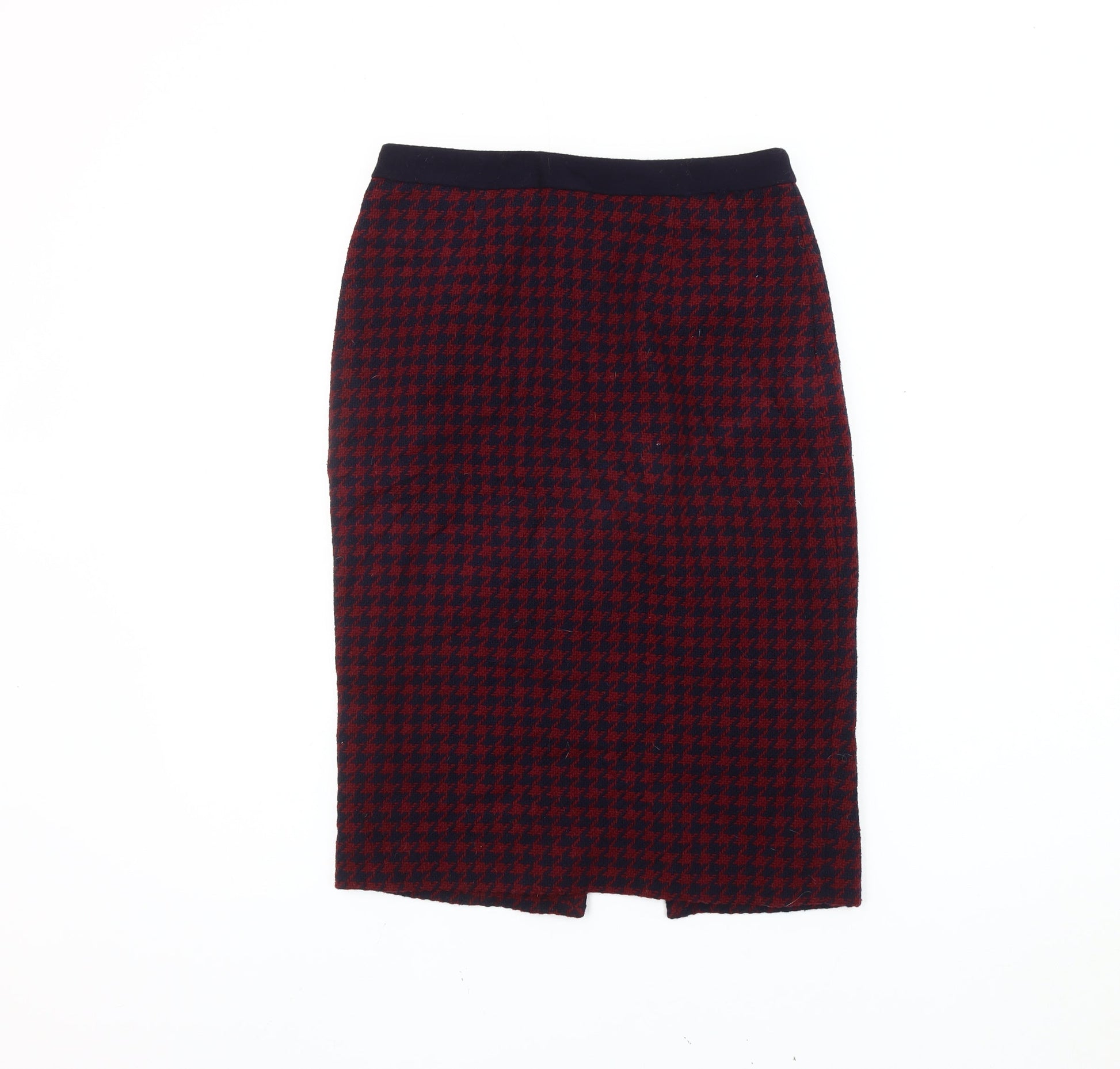 Hobbs Women’s Red Check Wool-Blend Pencil Skirt Size 8
