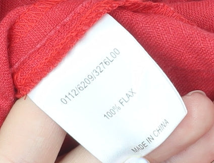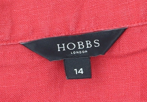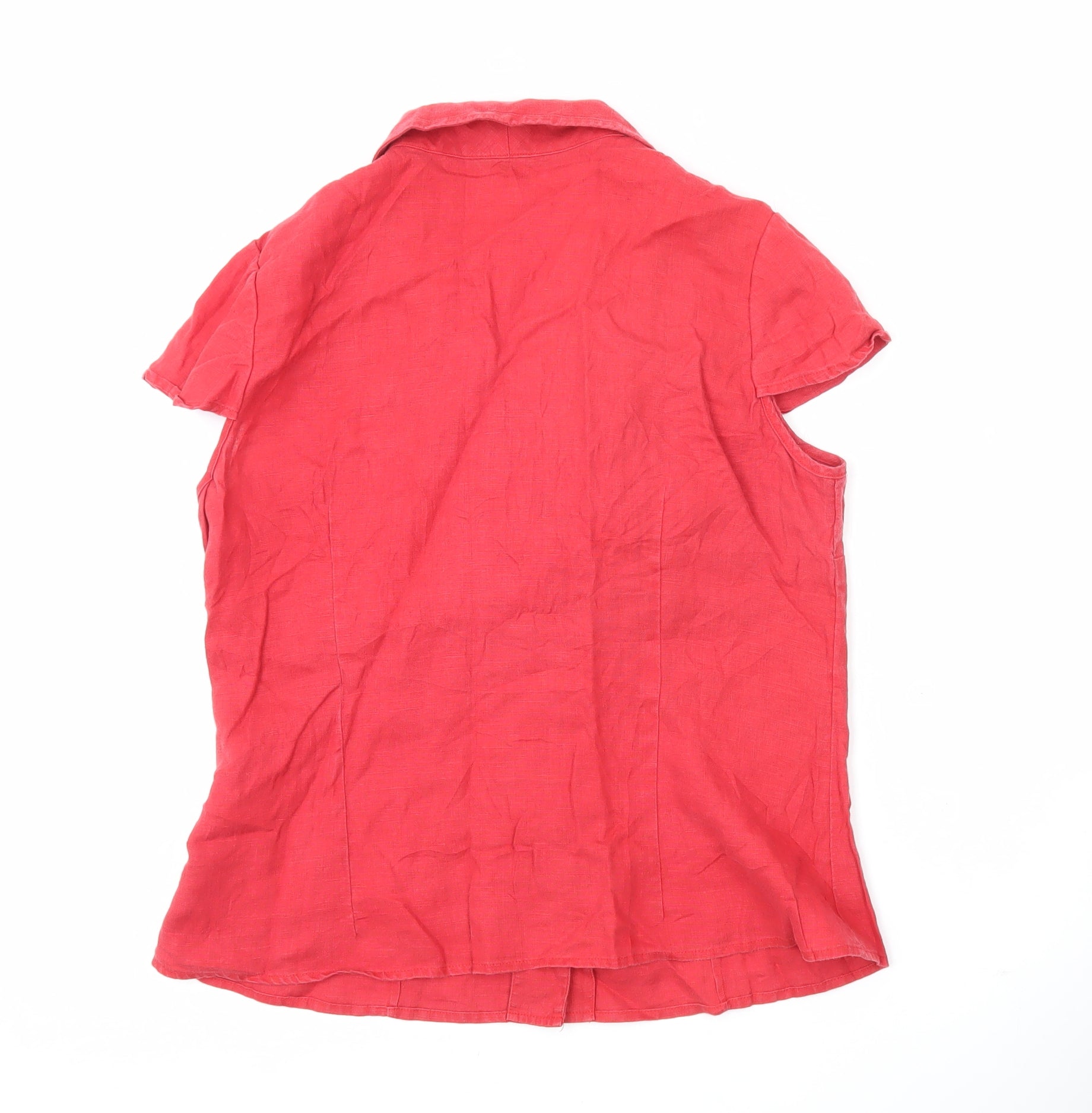Hobbs Women’s Red Linen Collared Short Sleeve Button-Up Shirt Size 14