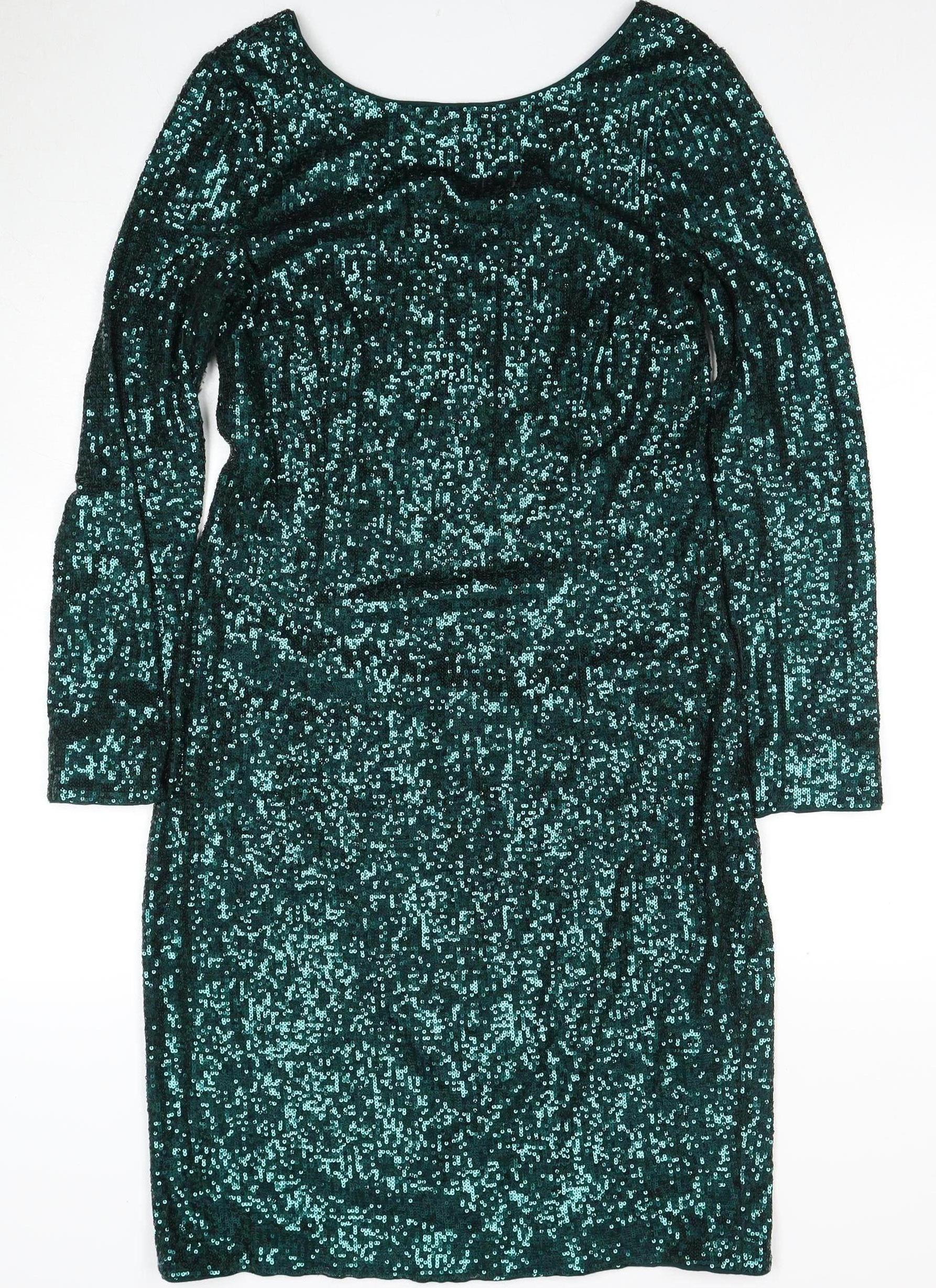 Hobbs Women's Green Sequin Party Dress Size 14