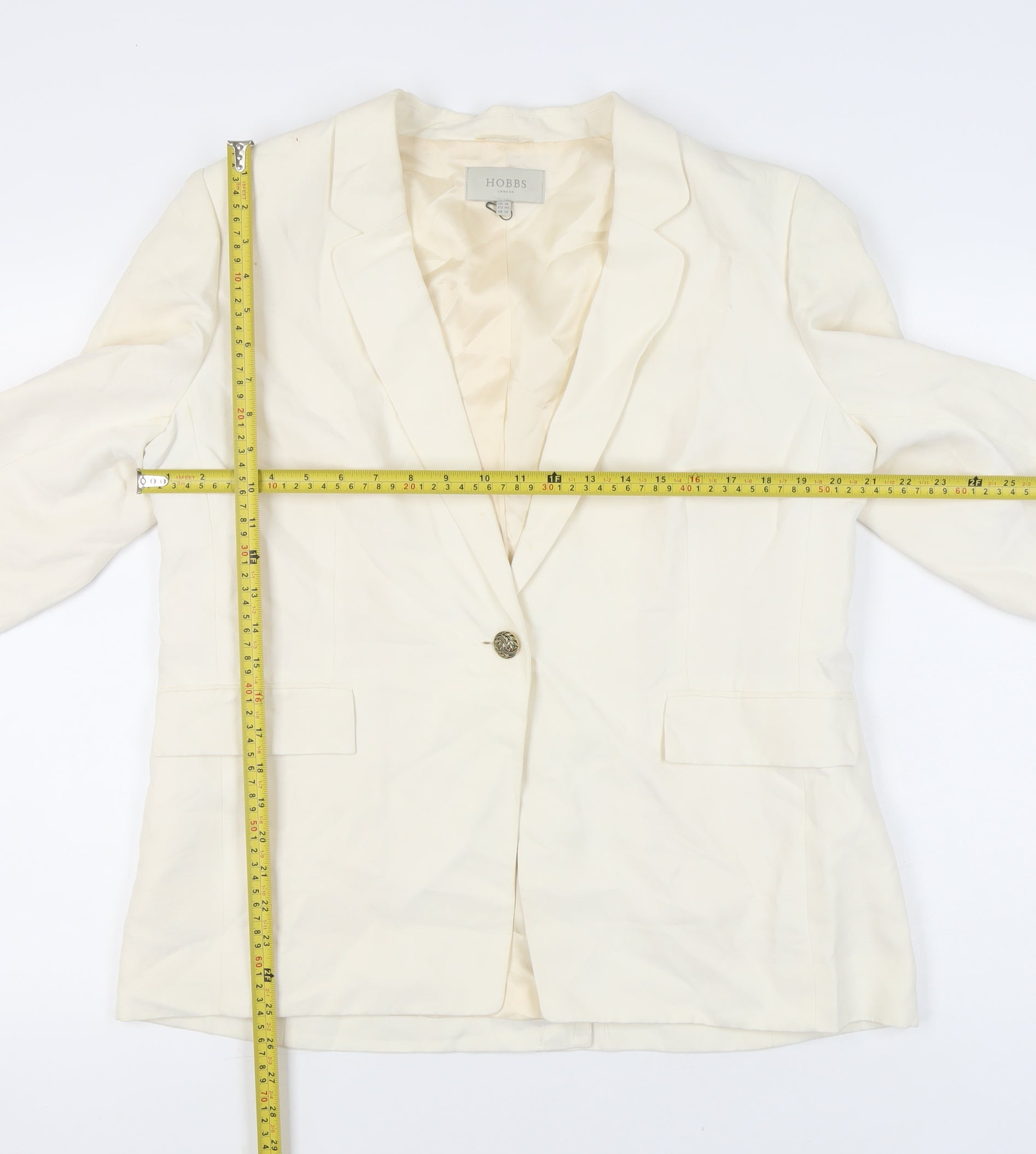 Hobbs Womens Ivory Linen Silk Blazer Jacket UK 16 Workwear