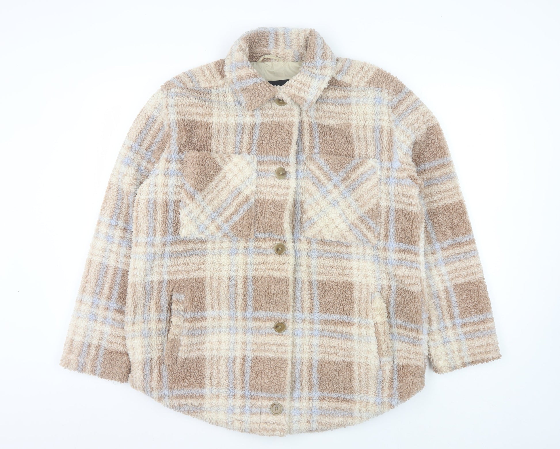 Hollister Men's Beige Plaid Faux Fur Button Jacket M
