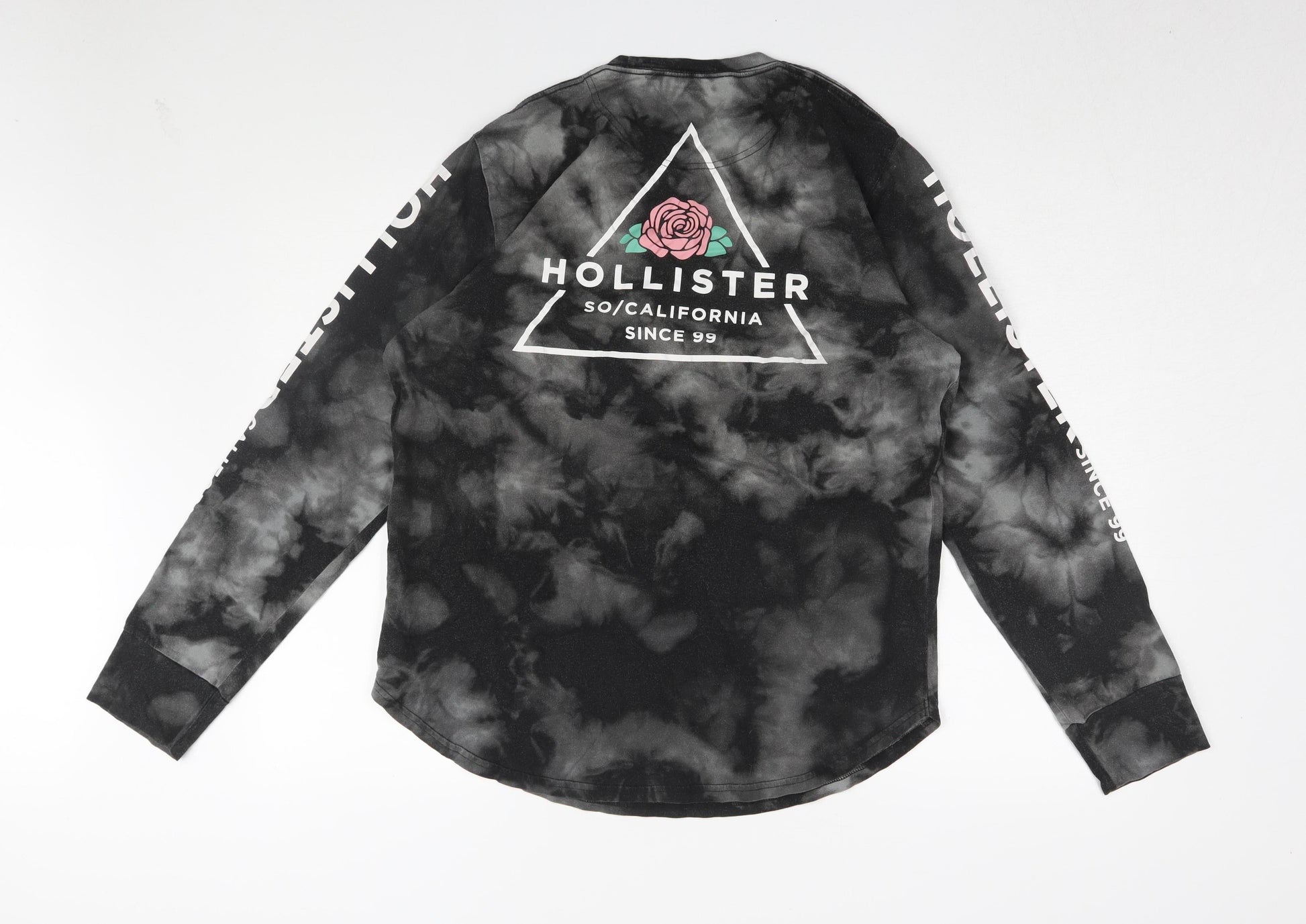 Hollister Men's Black Art Theme Long Sleeve T-Shirt