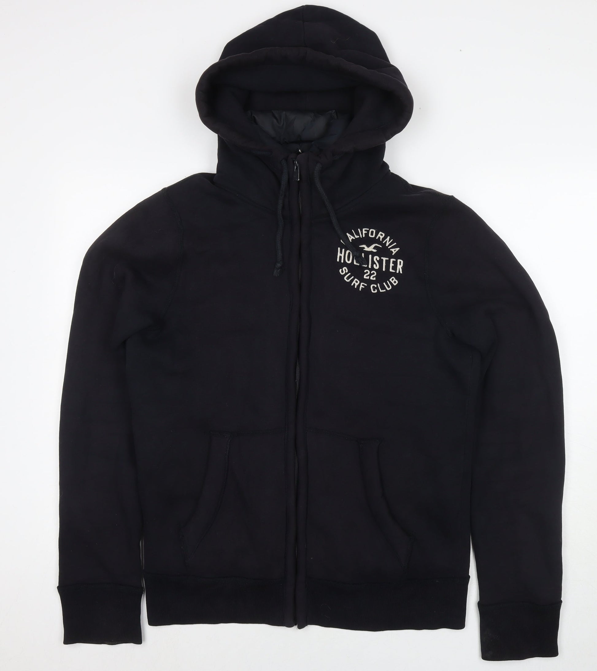 Hollister Mens Black Cotton Full Zip Hoodie Size S - Logo Detachable Lining