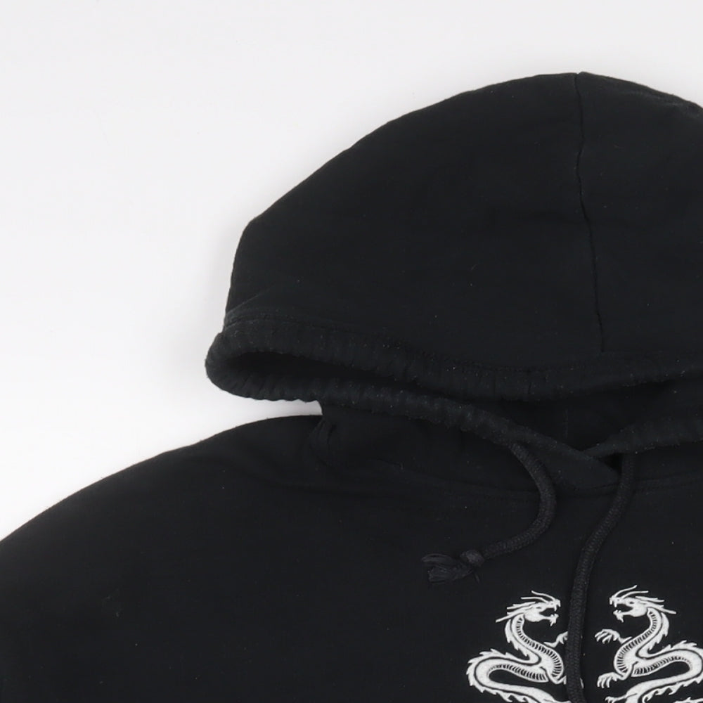 Hollister Mens Black Cotton Pullover Hoodie Size M - Dragons, Embroidered