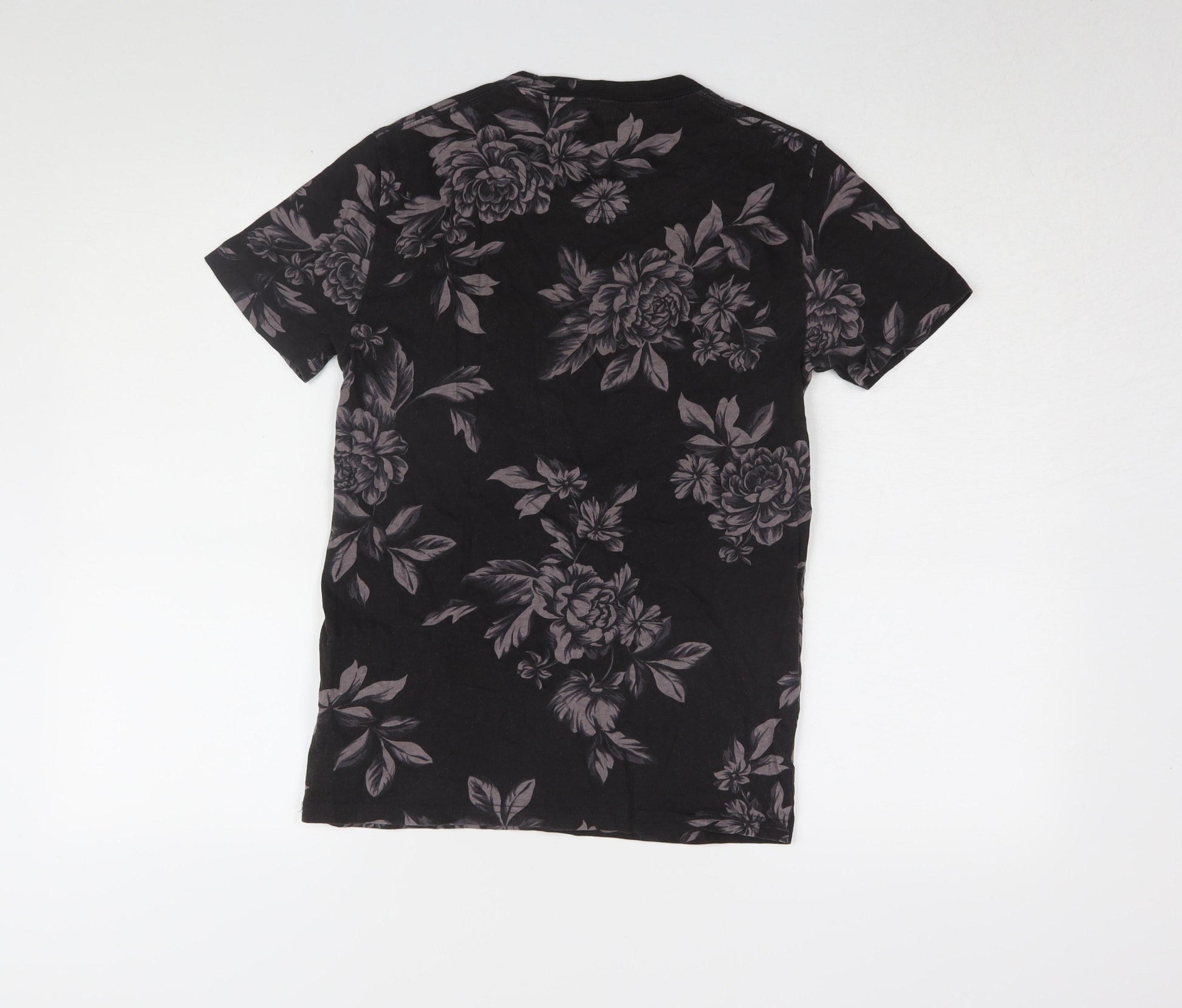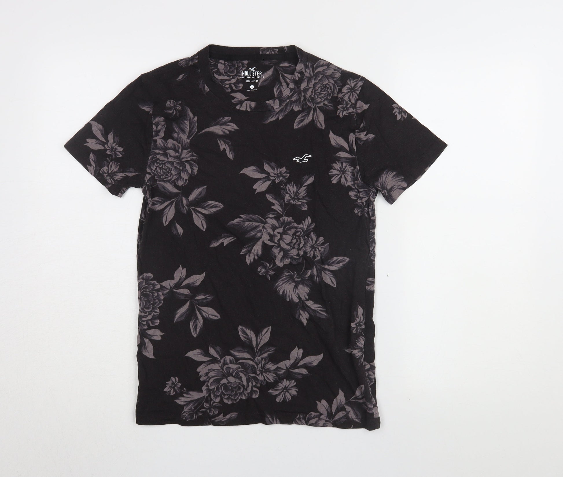 Hollister Men's Black Floral T-Shirt XS Cotton