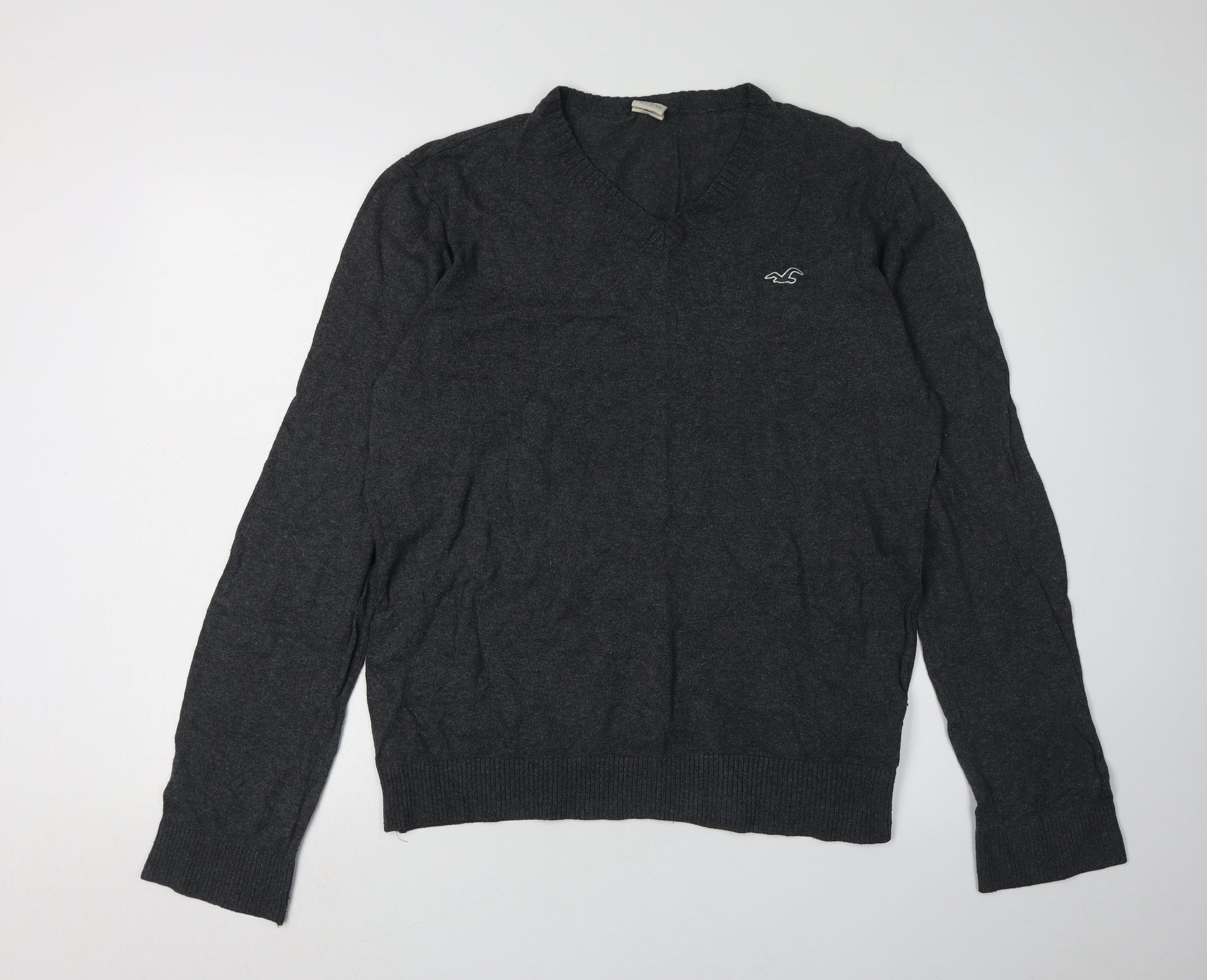 Hollister Men's Black V-Neck Pullover Jumper Size L