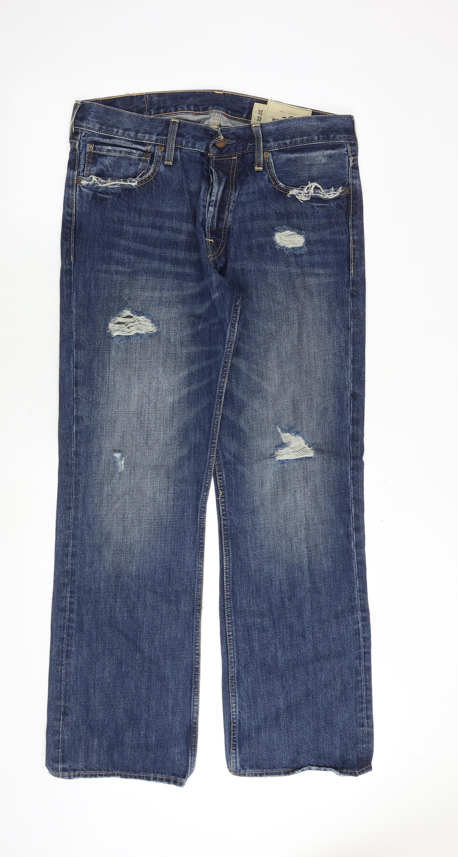 Hollister Mens Blue Cotton Straight Jeans Size 32 in L32 in Regular Zip