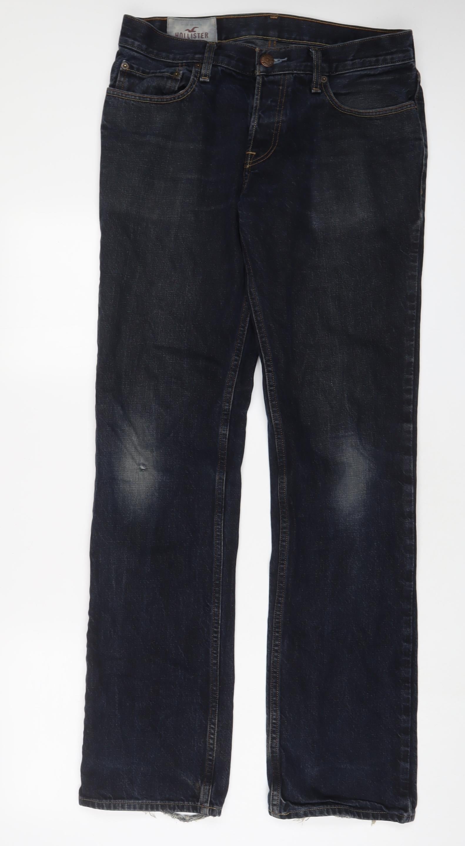 Hollister Mens Blue Cotton Straight Jeans Size 32 in L34 in Regular Button - Long Leg