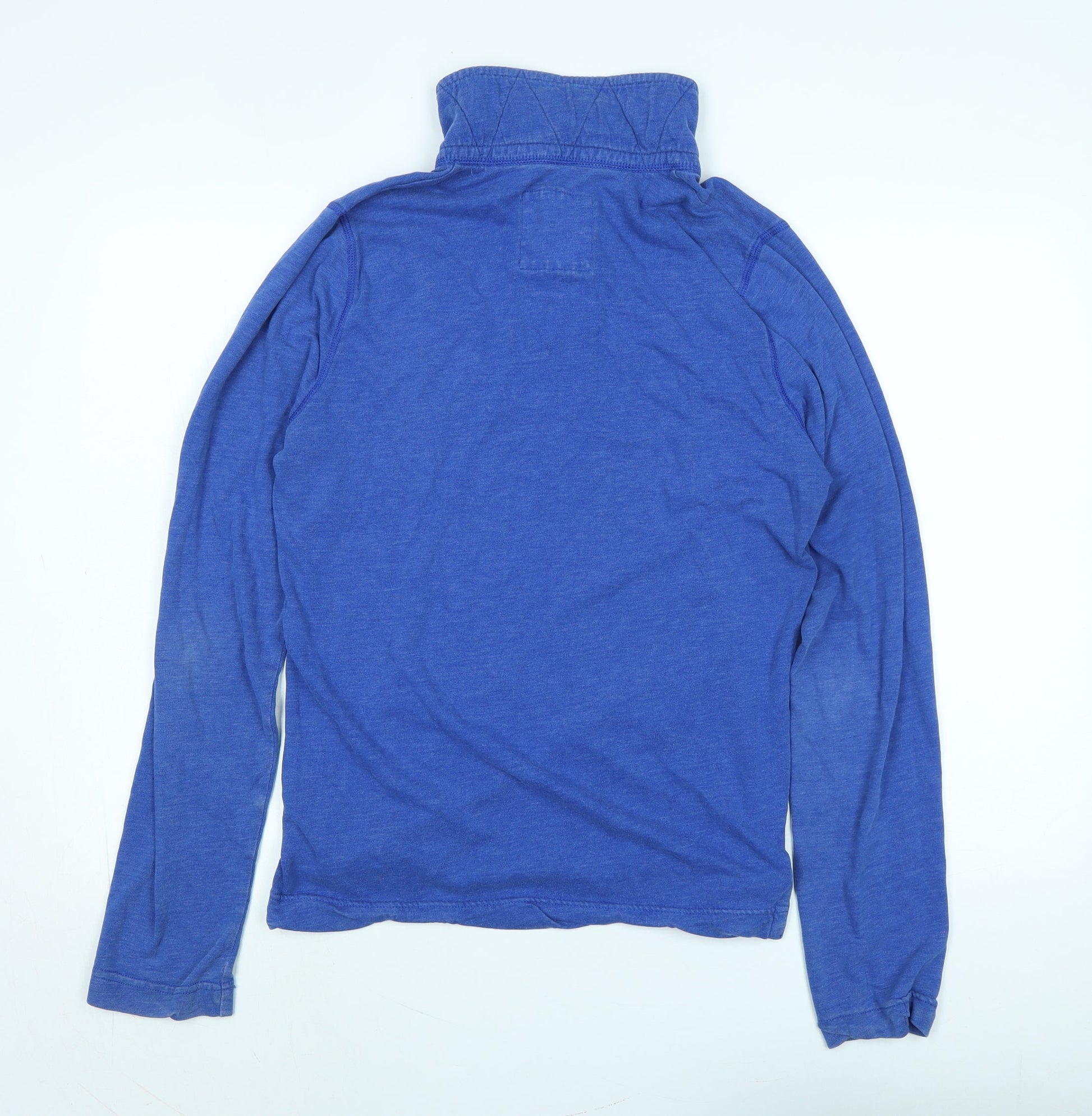 Hollister Mens Blue Mock Neck Cotton Pullover Jumper Size L Long Sleeve - Logo