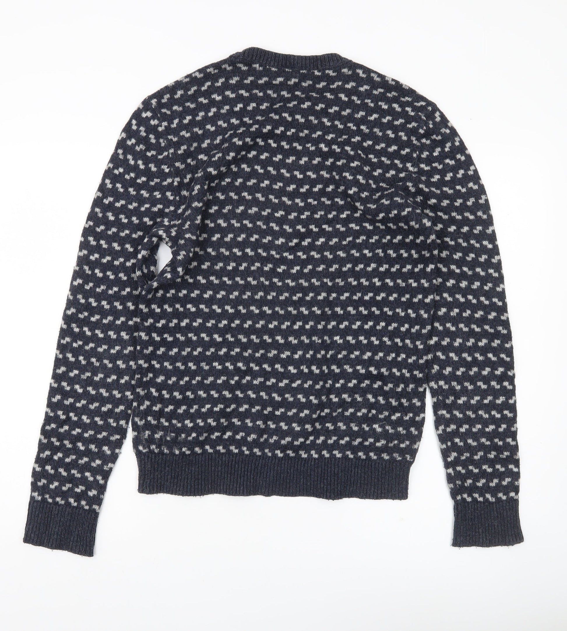 Hollister Men's Blue Small Pullover Jumper Crew Neck Knit Geometric