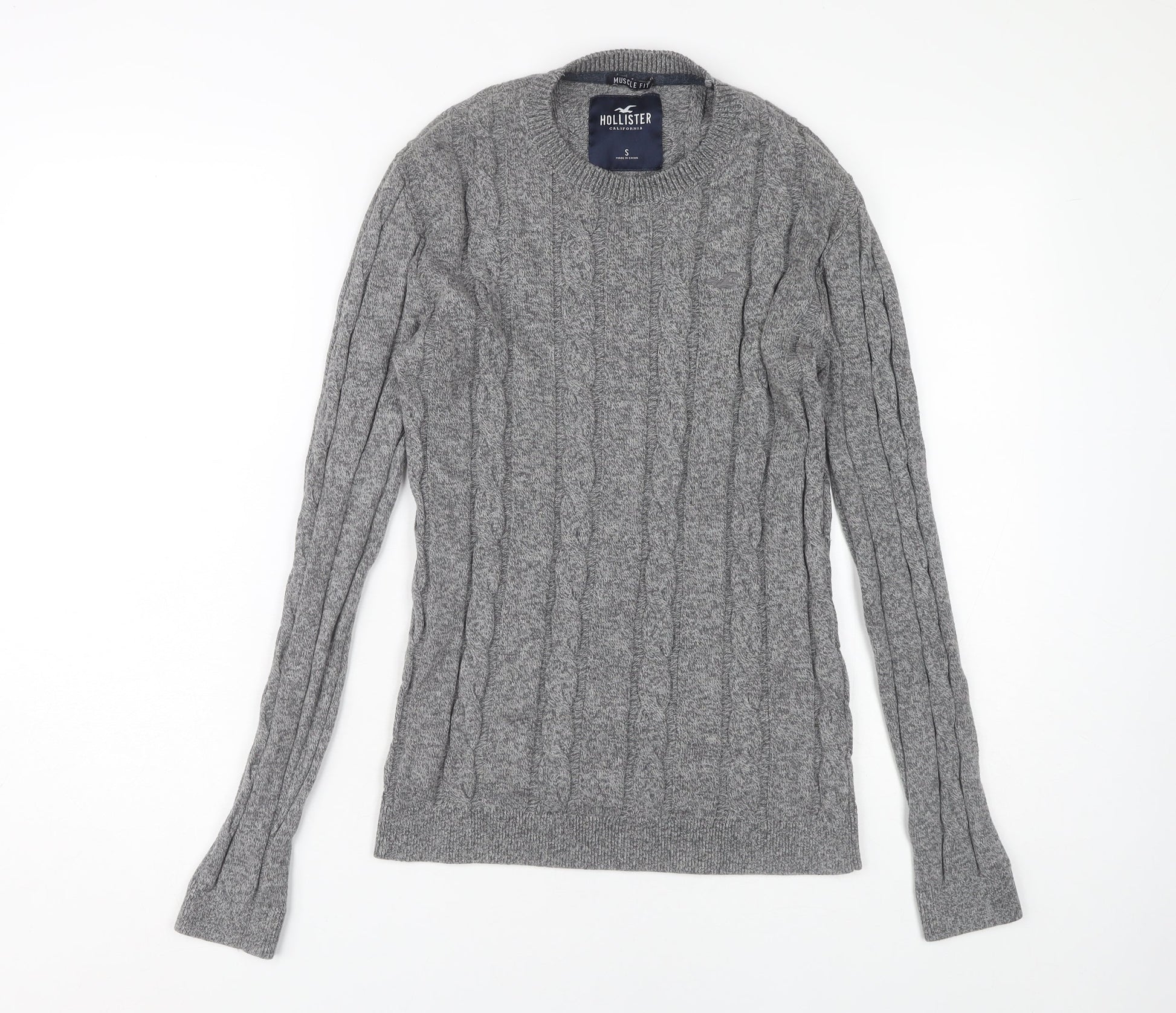 Hollister Men's Grey Cable-Knit Pullover Jumper S