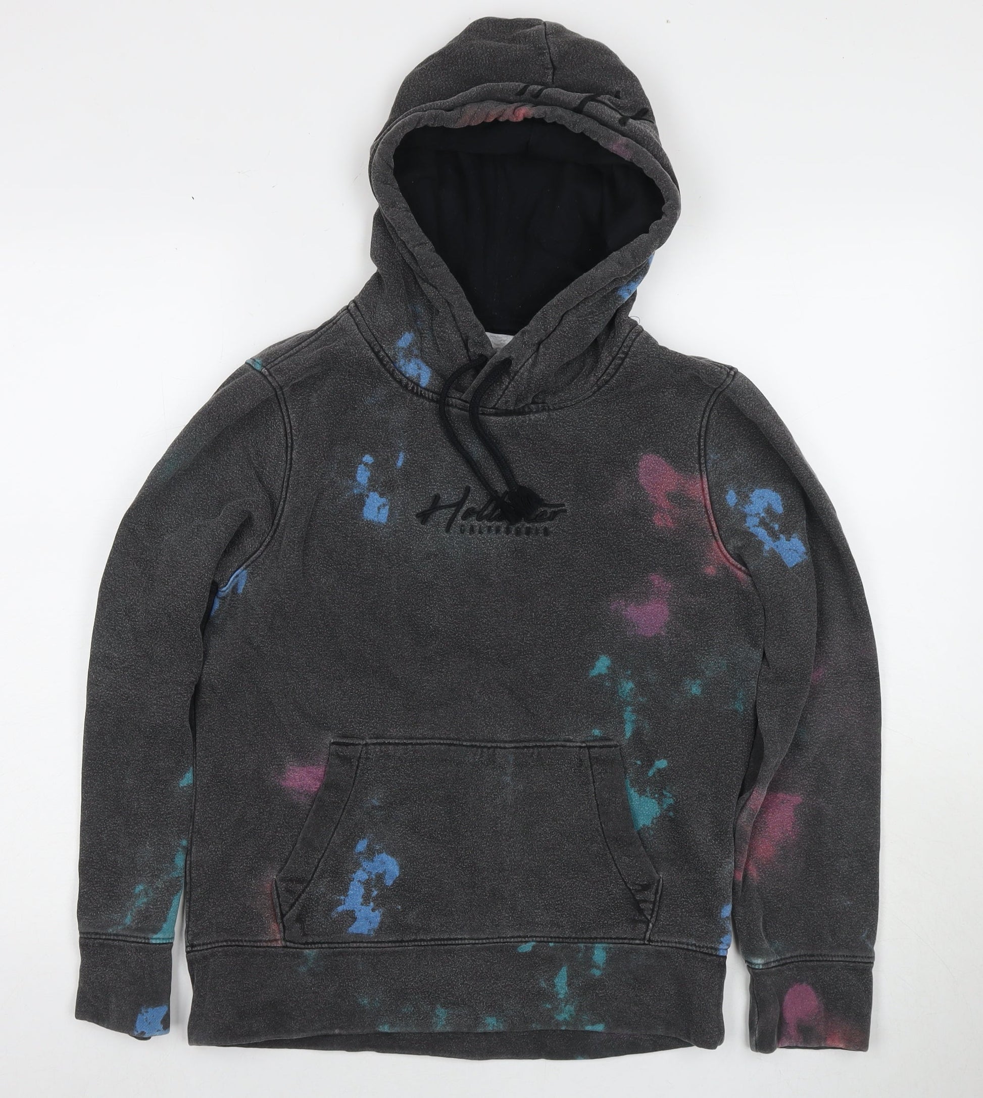 Hollister Mens Grey Cotton Pullover Hoodie Size XS - Size 2XS Tie-dye detail