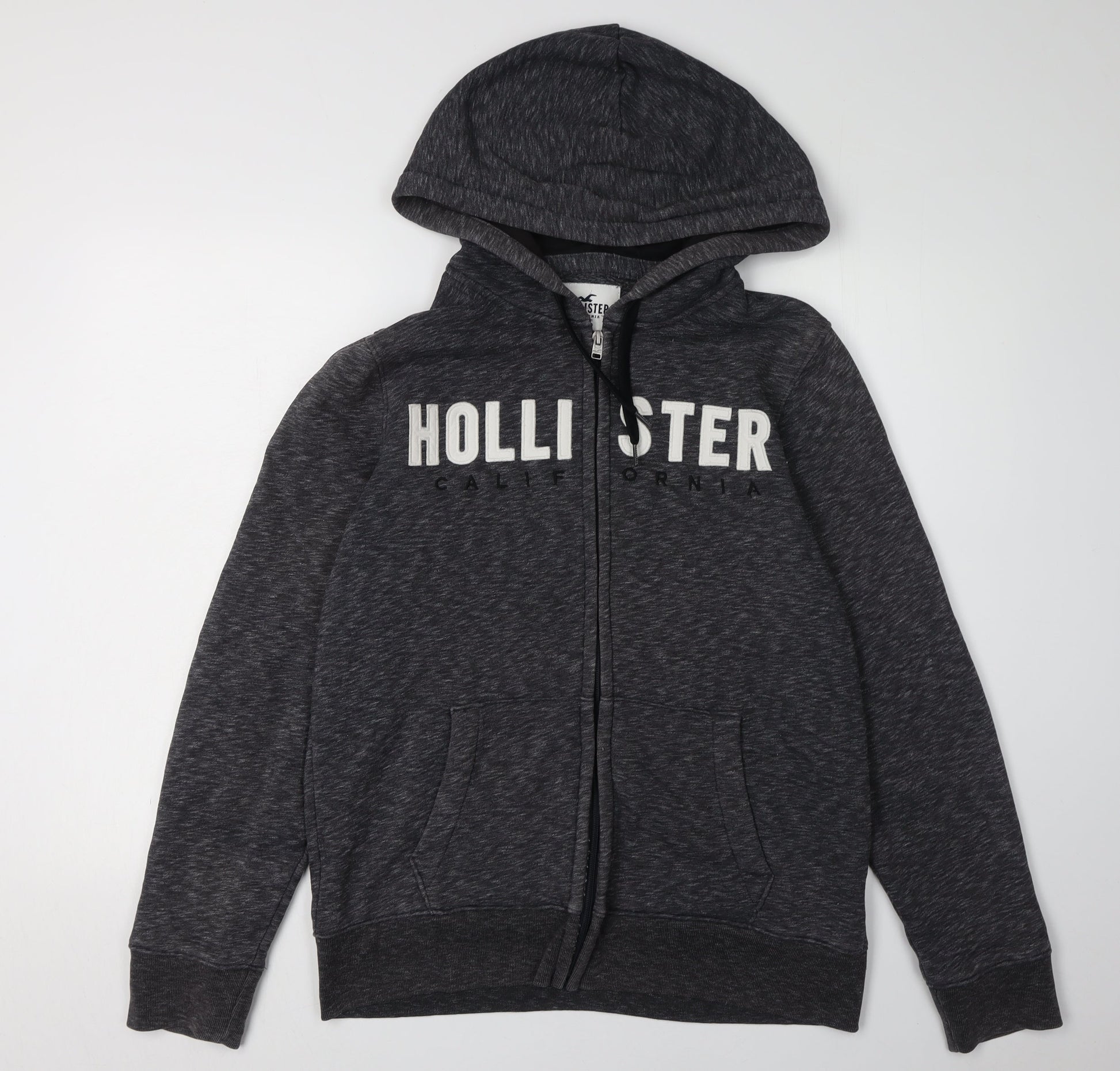 Hollister Men's Grey Full Zip Hoodie, M, Logo
