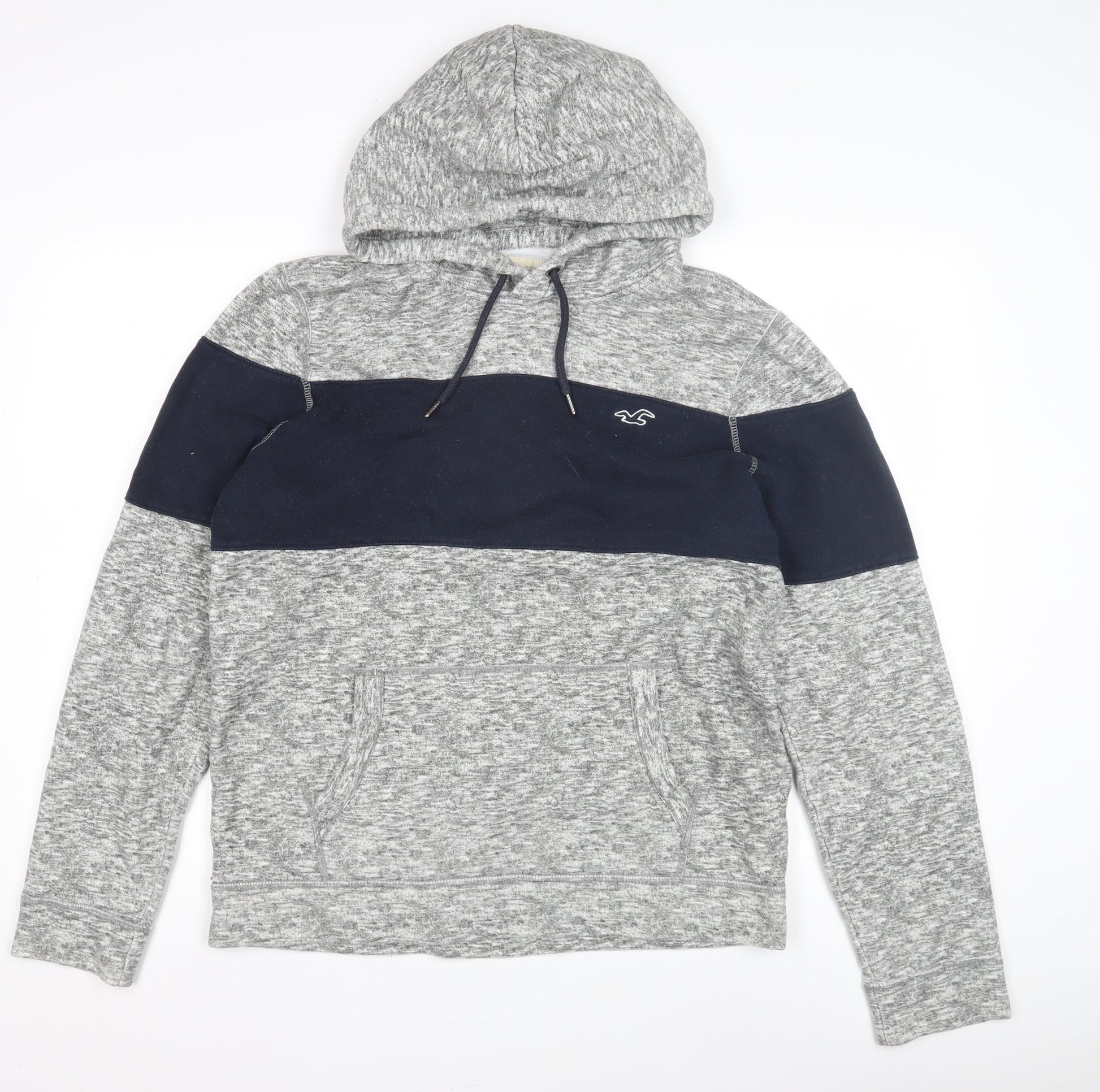 Hollister Men's Grey Pullover Hoodie L - Logo Accent