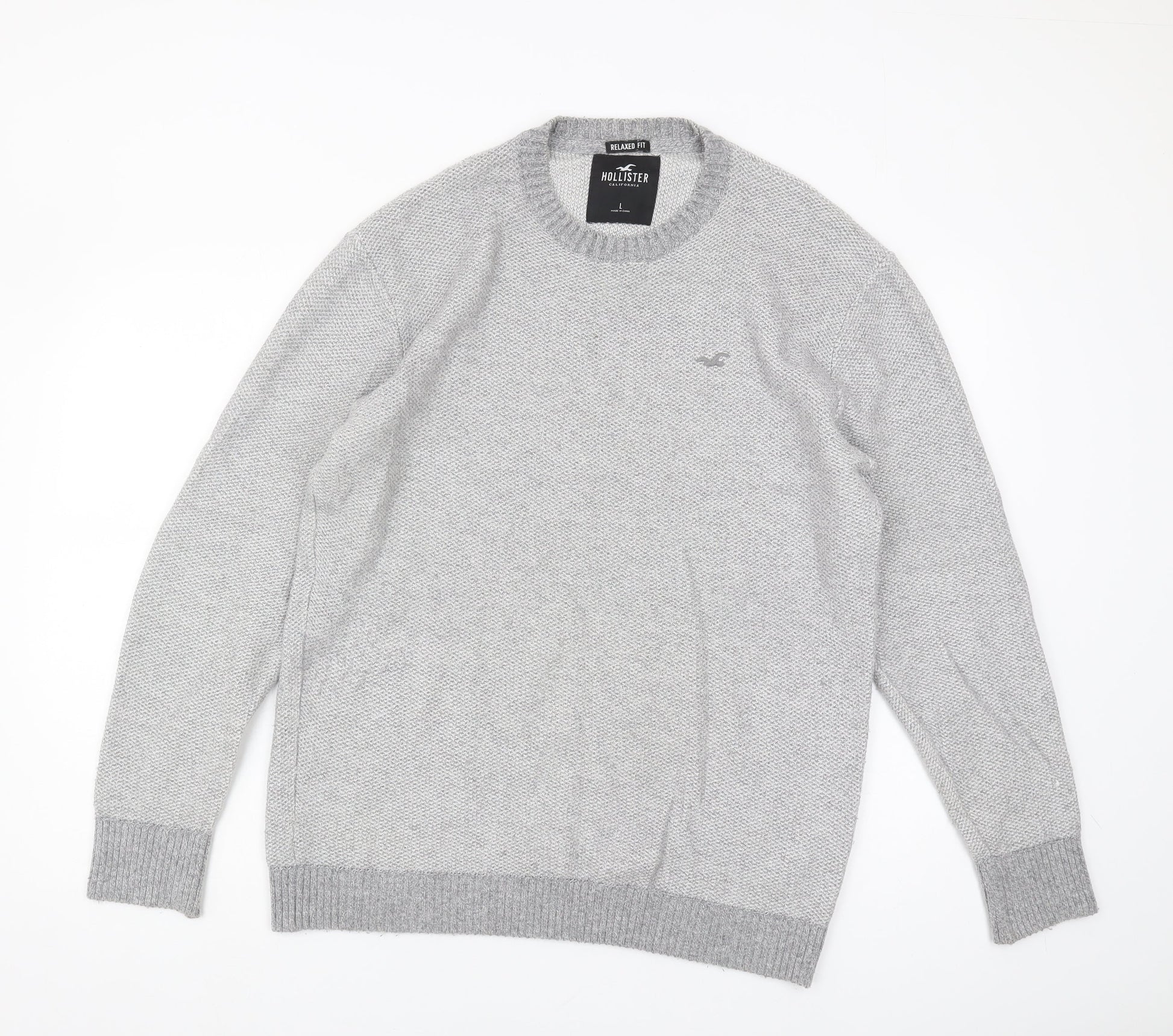 Hollister Men's Grey Pullover Jumper - Size L, Relaxed Fit