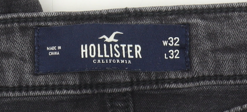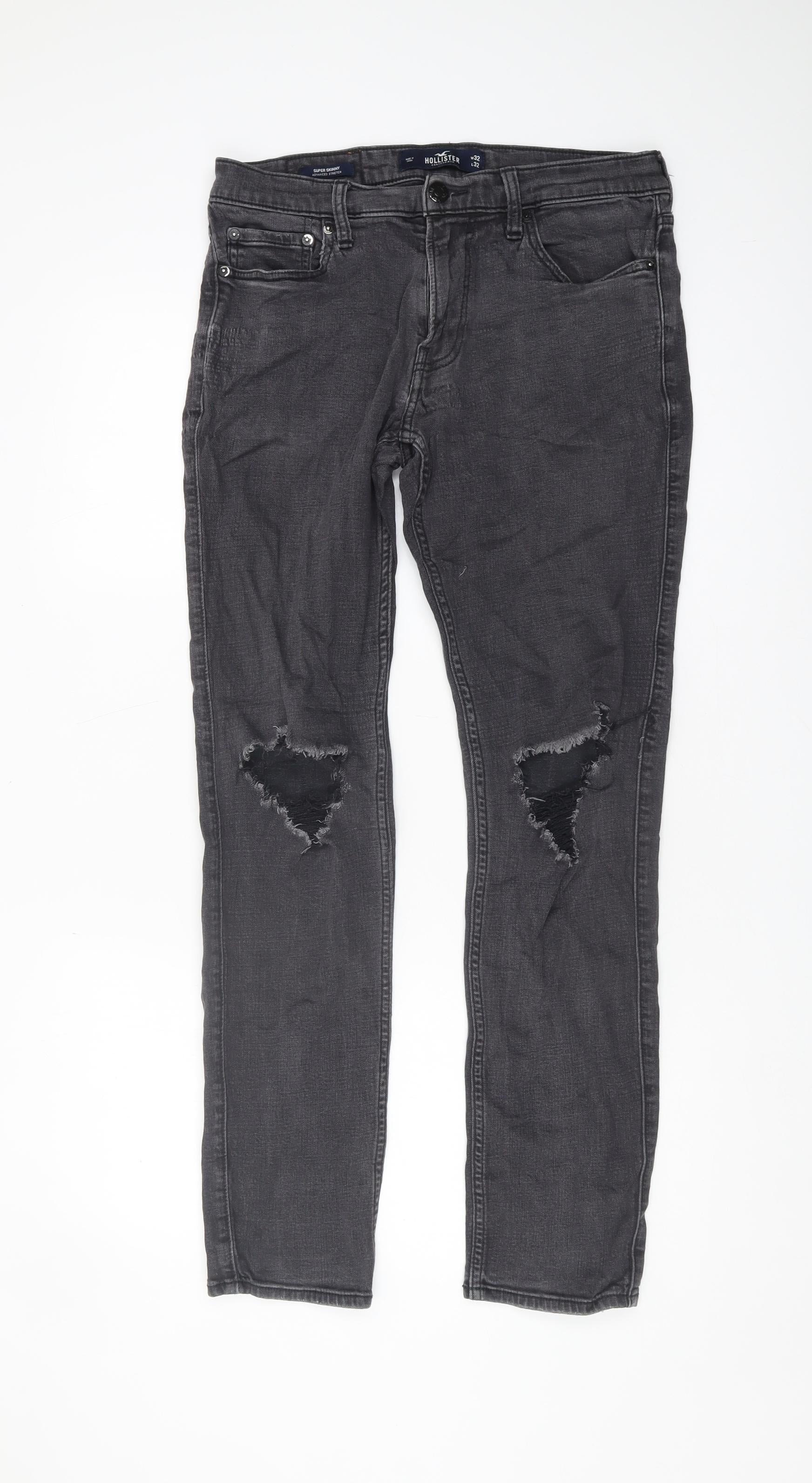 Hollister Men's Grey Skinny Jeans Size 32 with Distressed Style