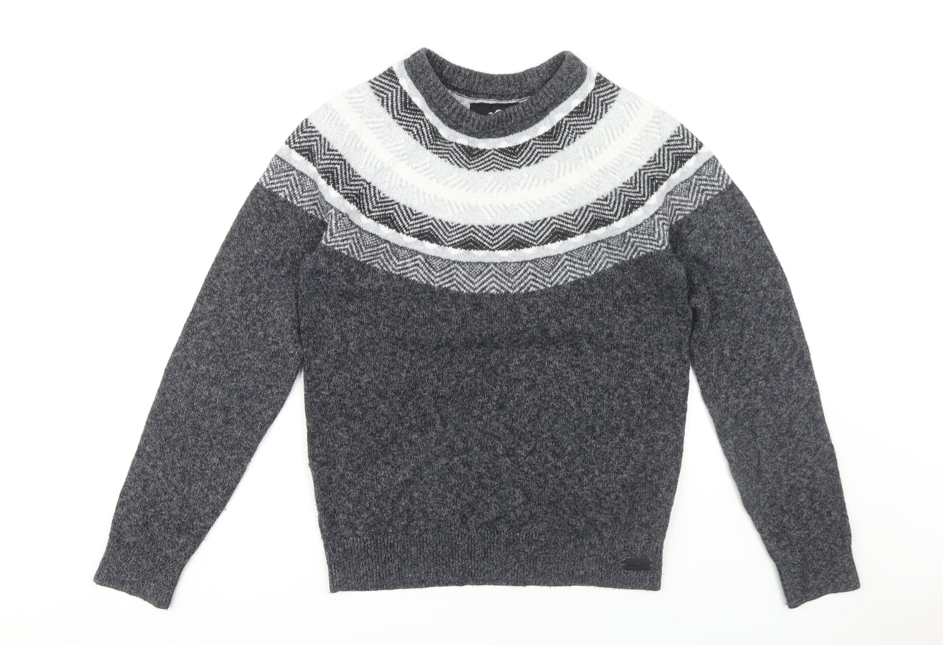 Hollister Men's Grey XS Pullover Jumper, Geometric Pattern