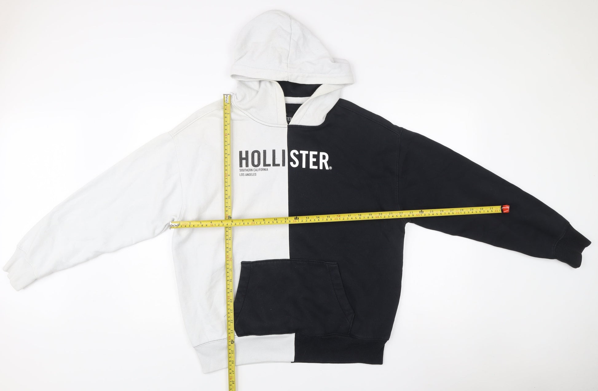 Hollister Mens Medium Black White Pullover Hoodie Logo Graphic