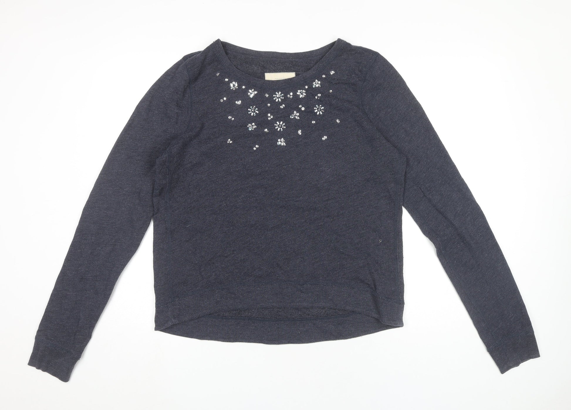 Hollister Women Blue L Pullover Sweatshirt Beaded Crew Neck Long Sleeve