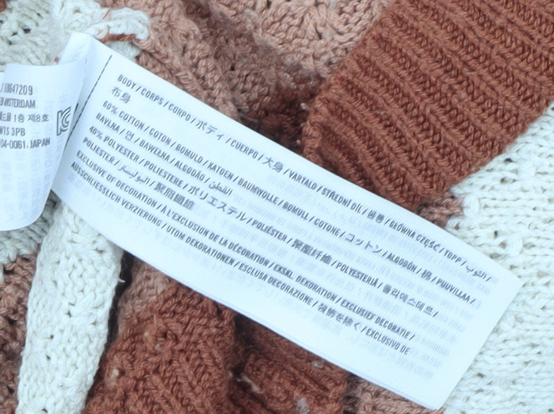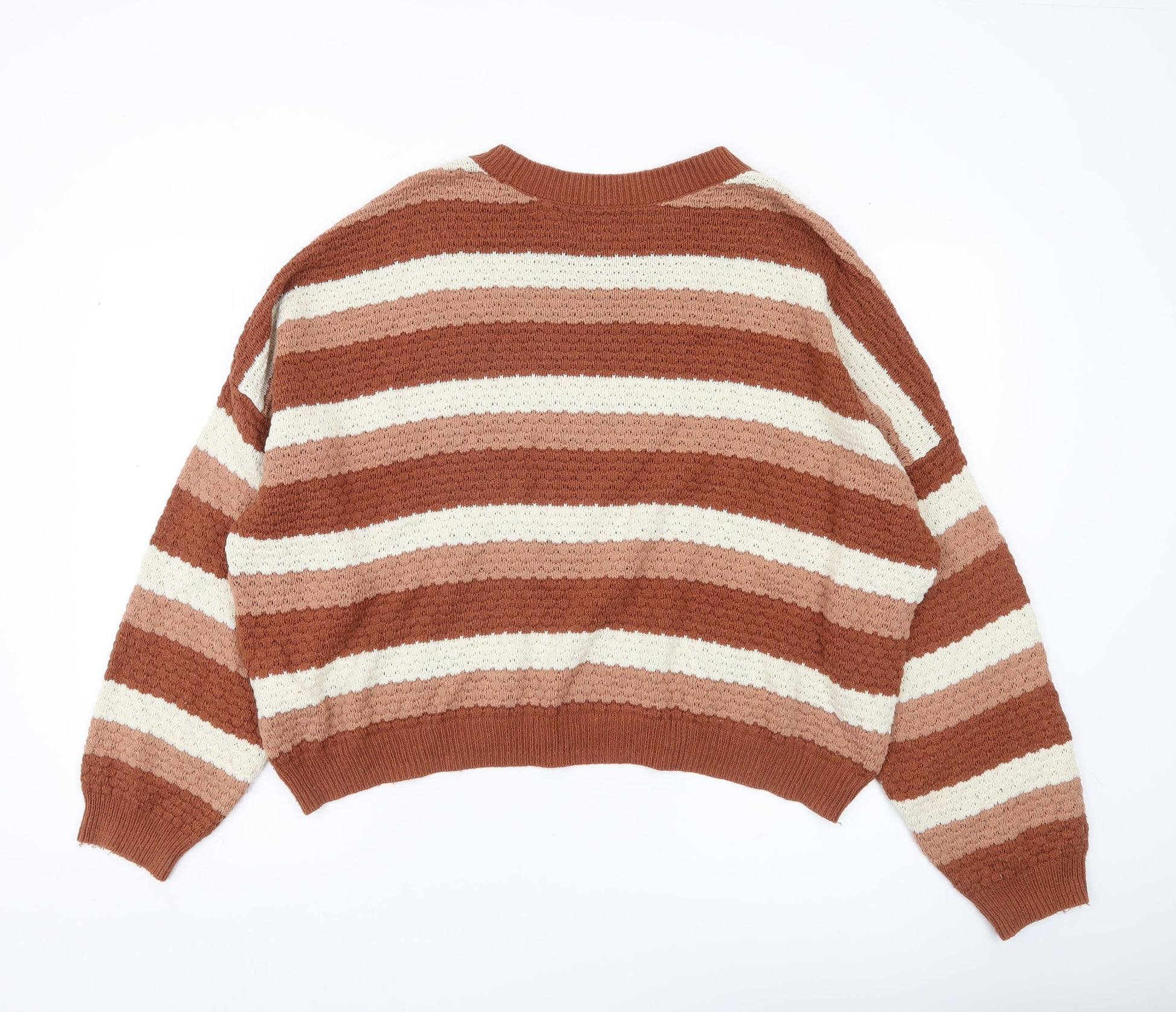Hollister Women’s Brown Striped Knit Jumper XL Relaxed Crew Neck Pullover