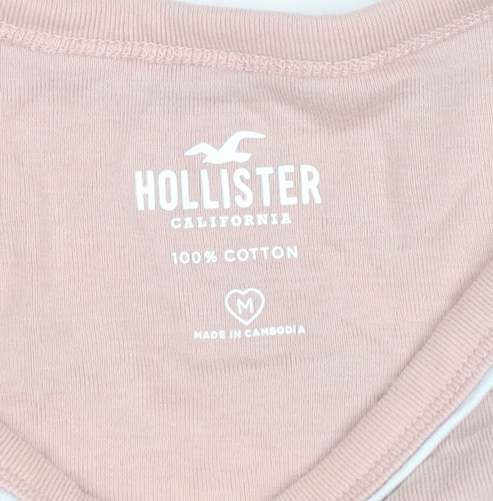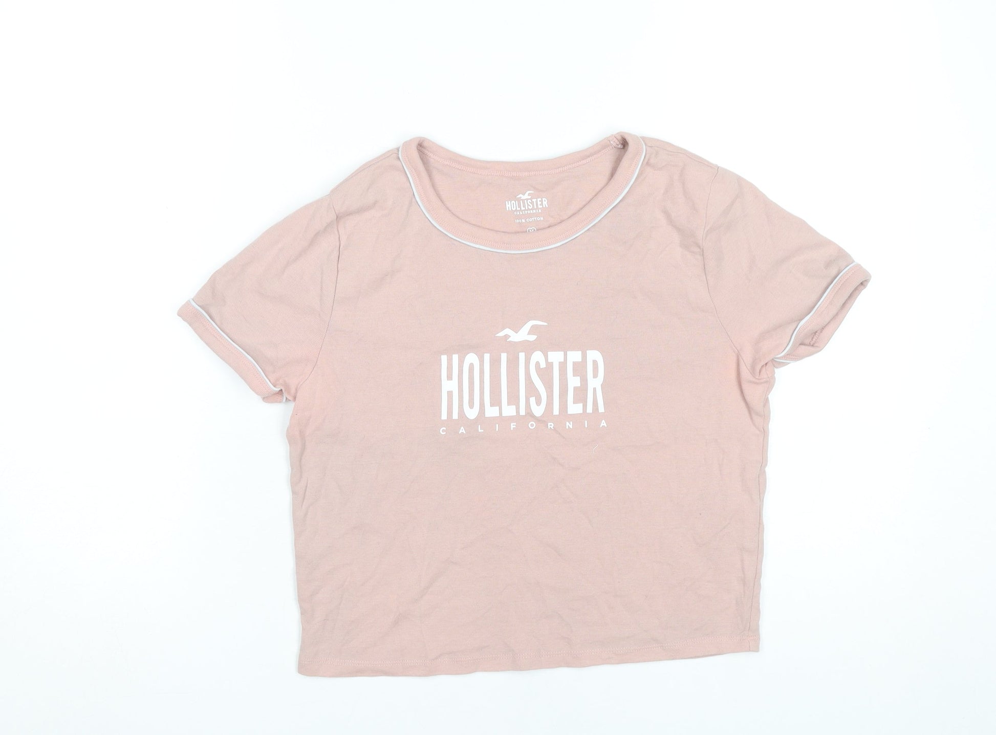 Hollister Women’s Pink Cropped T-Shirt Size M Casual Cotton