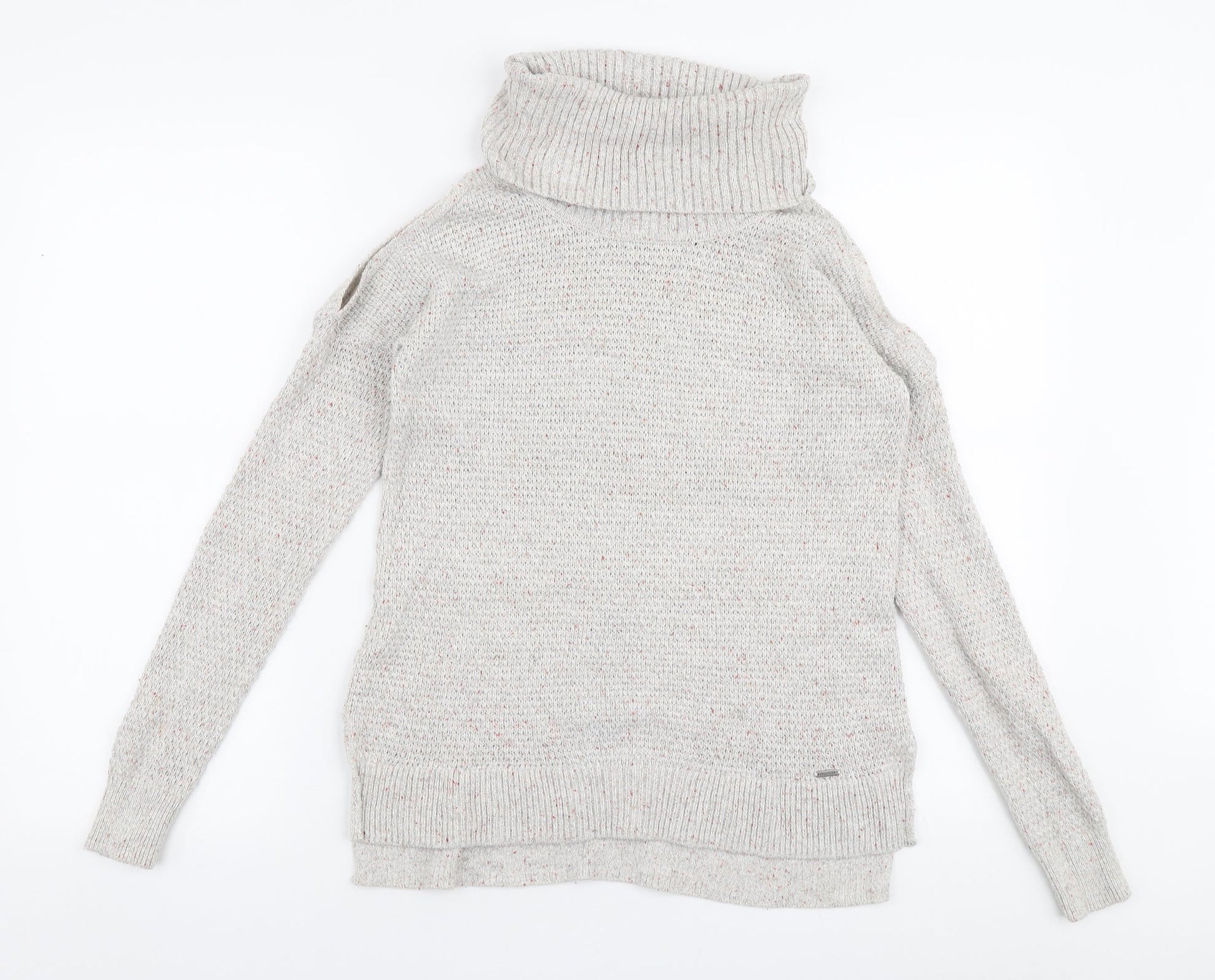 Hollister Womens Beige Roll Neck Cotton Pullover Jumper Size XS - Cold shoulder