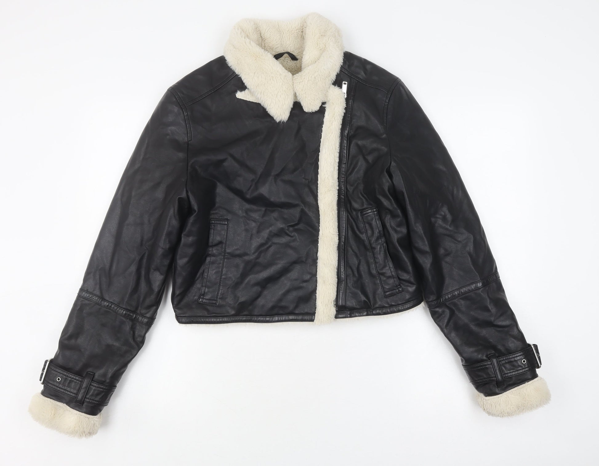 Hollister Womens Black Biker Jacket, M, Faux Leather