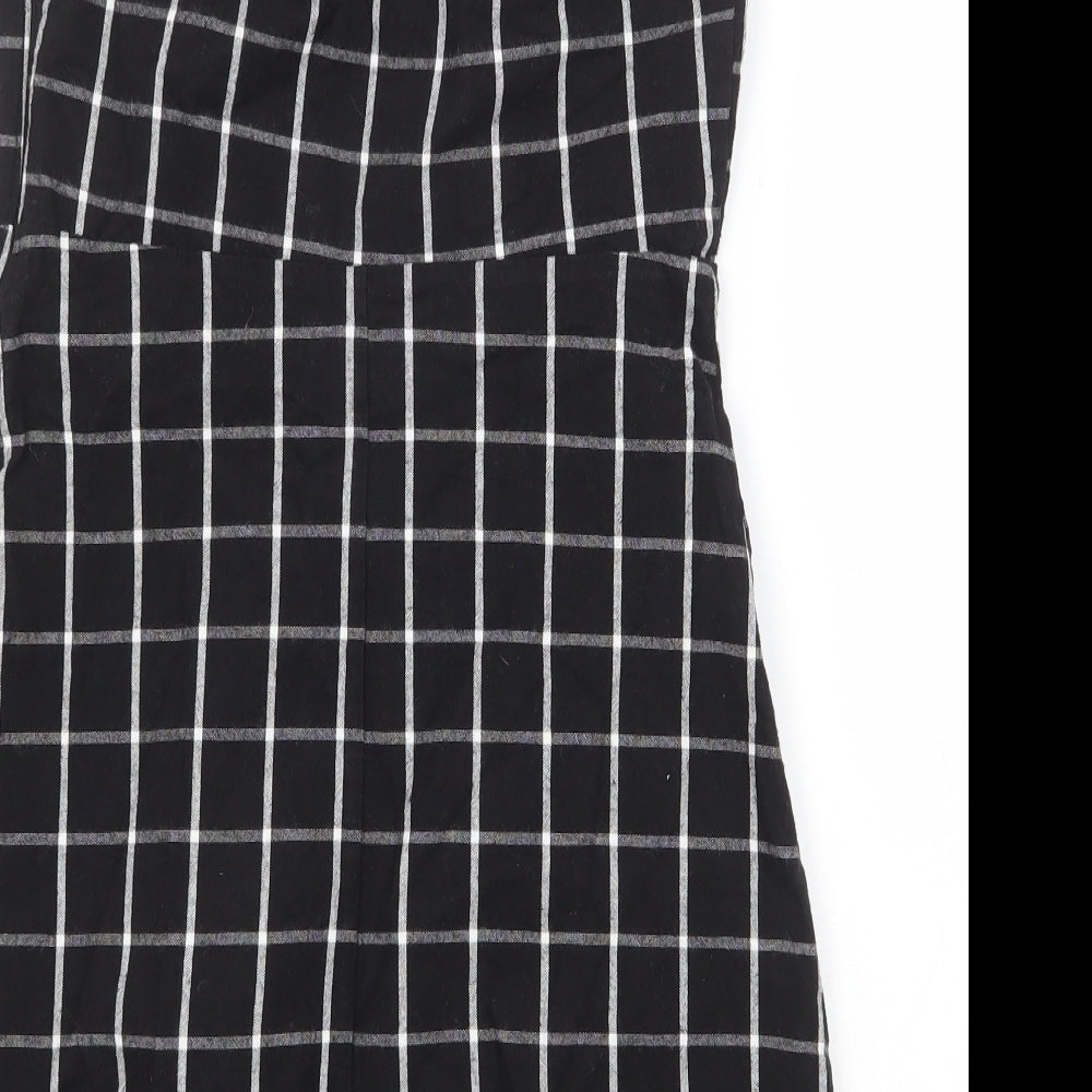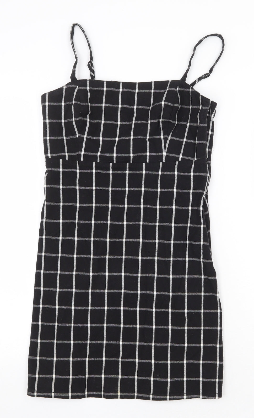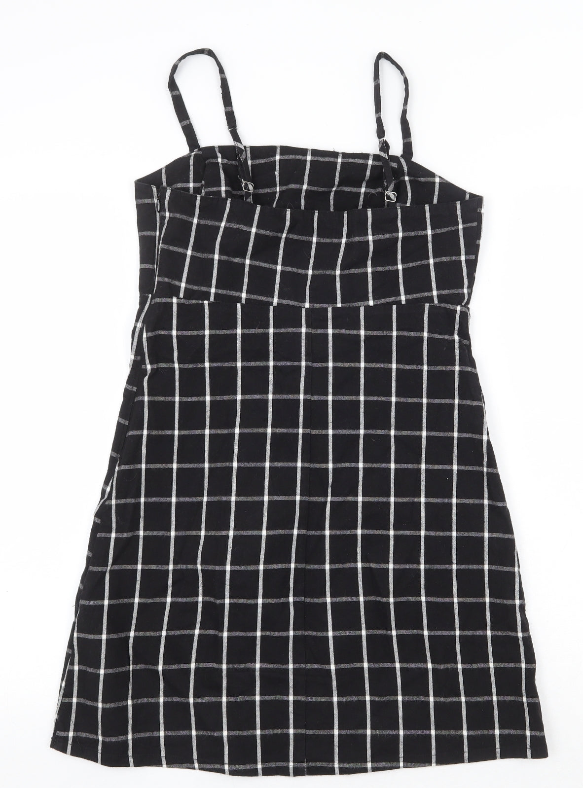 Hollister Womens Black Check Cotton Slip Dress Size S Square Neck Zip