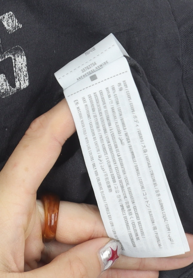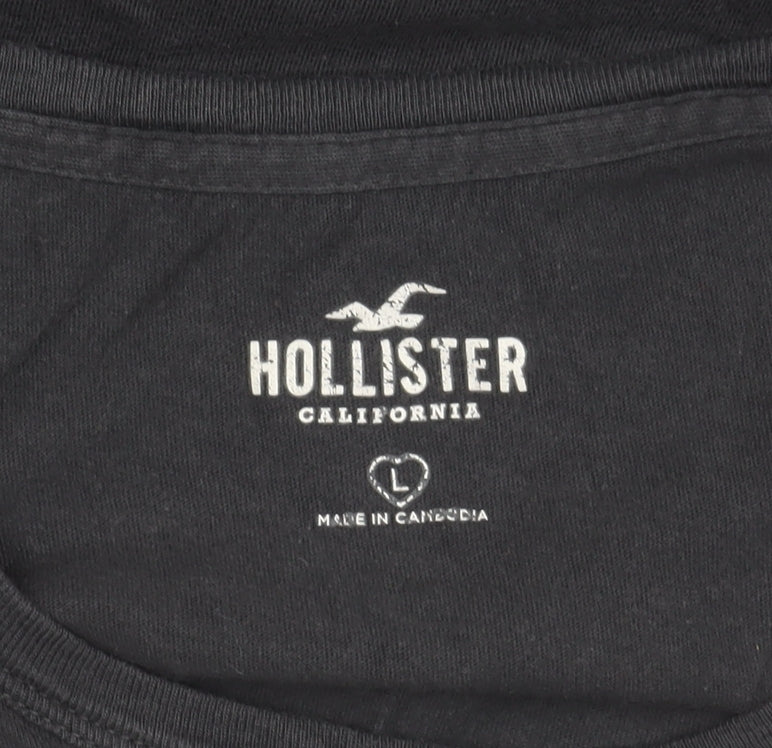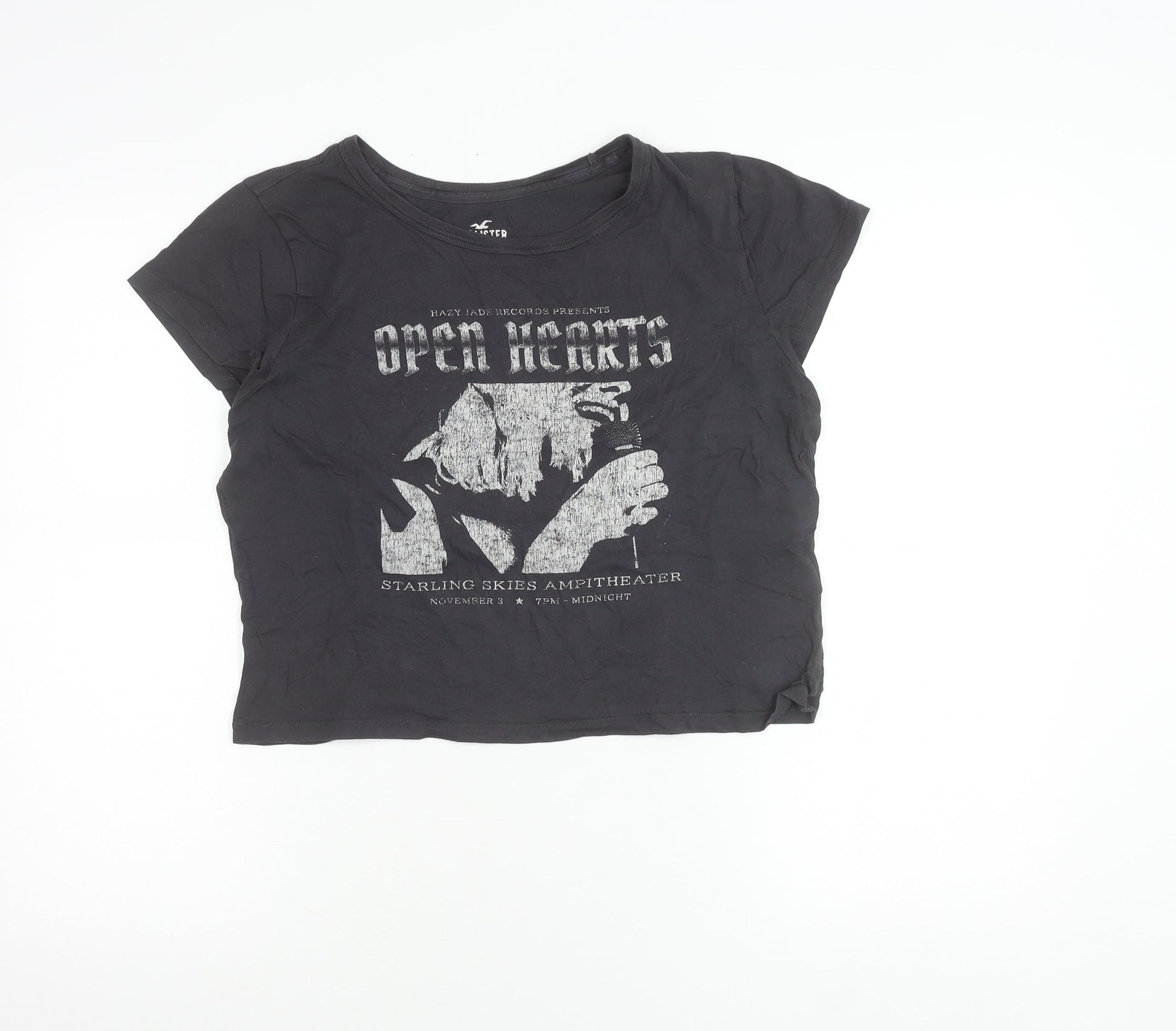 Hollister Womens Black Cropped Graphic T-Shirt Size L Cotton