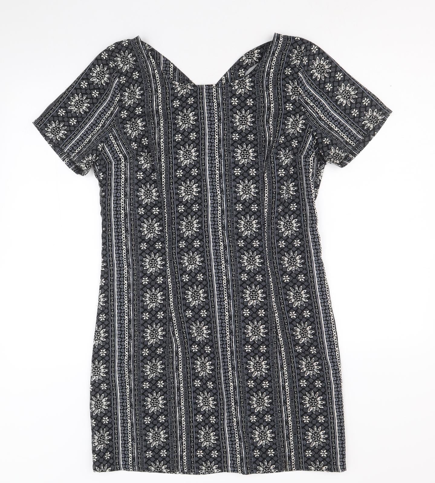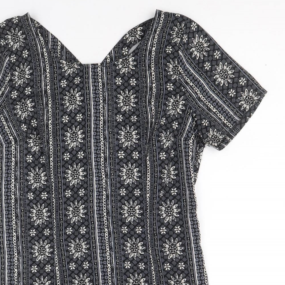 Hollister Womens Black Geometric Polyester A-Line Size L V-Neck Pullover