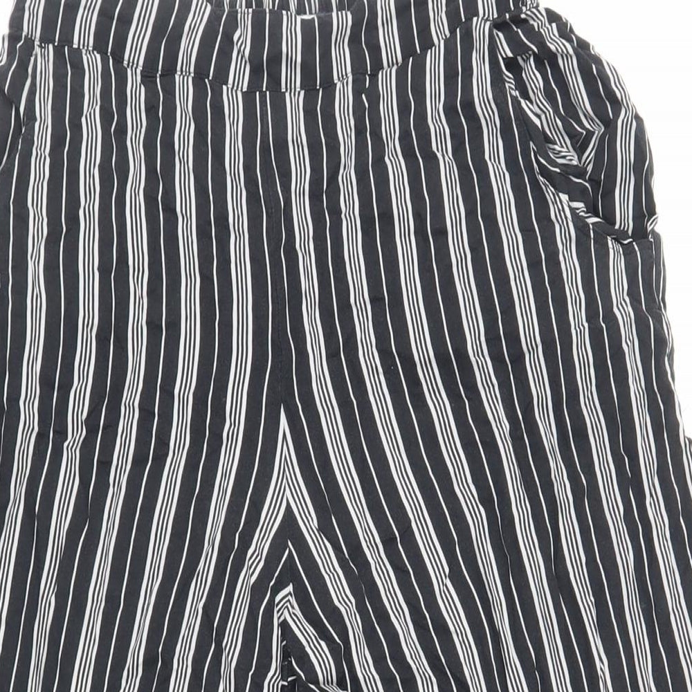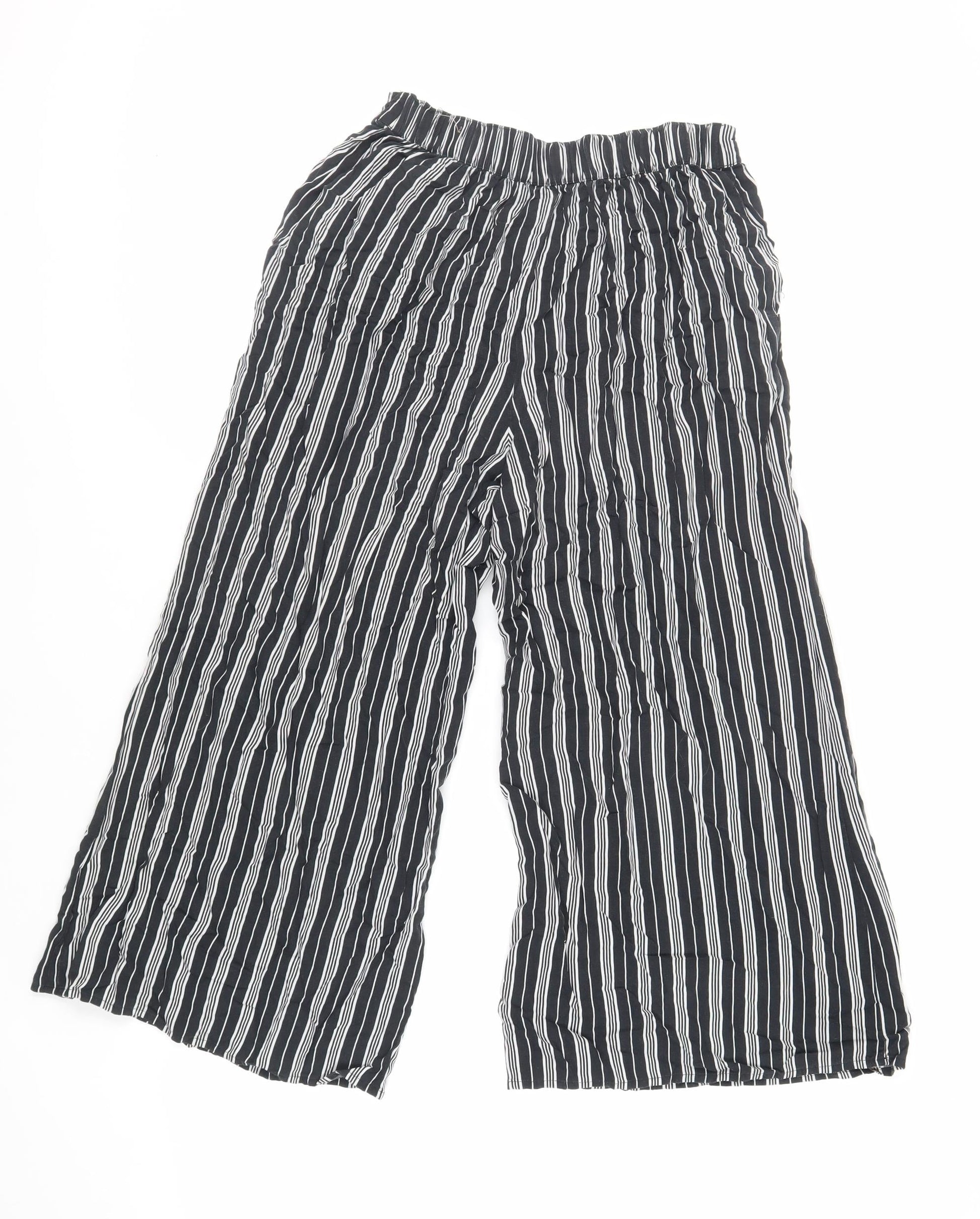 Hollister Womens Black Striped Viscose Cropped Trousers Size S L22 in Regular - Elasticated Waist