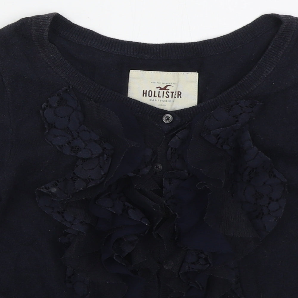Hollister Womens Blue Boat Neck Cotton Cardigan Jumper Size XS